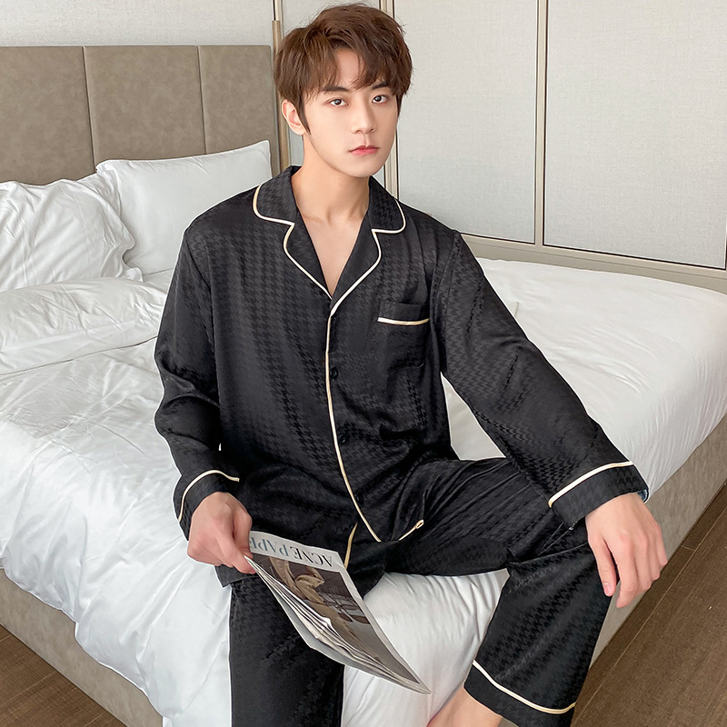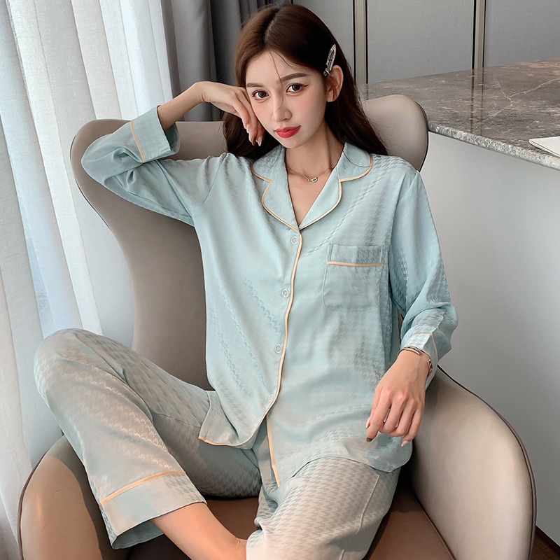 잠옷 여자의 봄과 가을 긴 소매 아이스 실크 얇은 자카드 하운즈투스 커플 세트 남자의 가정 의류 여름 1095 + N295스토어 가기