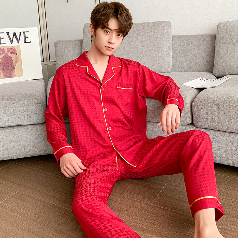 잠옷 여자의 봄과 가을 긴 소매 아이스 실크 얇은 자카드 하운즈투스 커플 세트 남자의 가정 의류 여름 1095 + N295