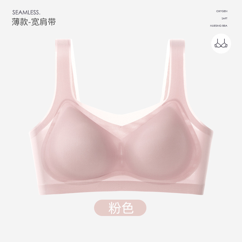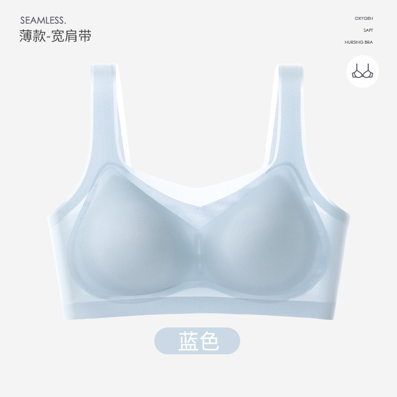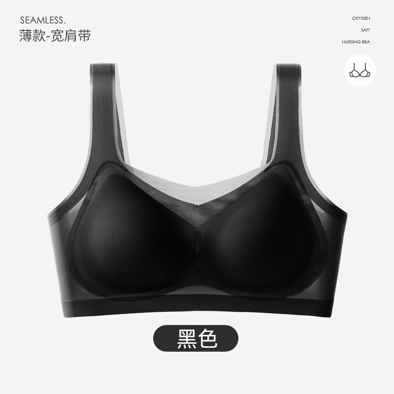 여름 초박형 아이스 실크 무테 속옷 여성용 추적없는 푸시 업 큰 가슴 작은 조끼 통기성 수면 브라