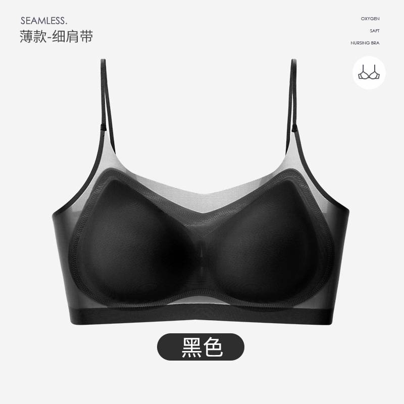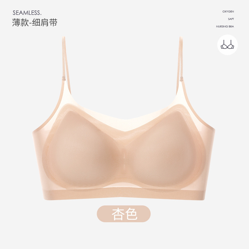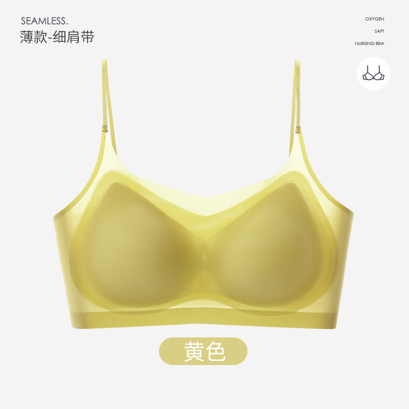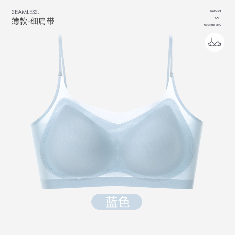 여름 초박형 아이스 실크 무테 속옷 여성용 추적없는 푸시 업 큰 가슴 작은 조끼 통기성 수면 브라스토어 가기