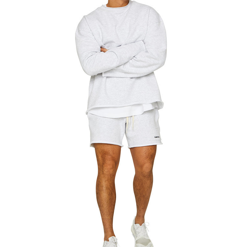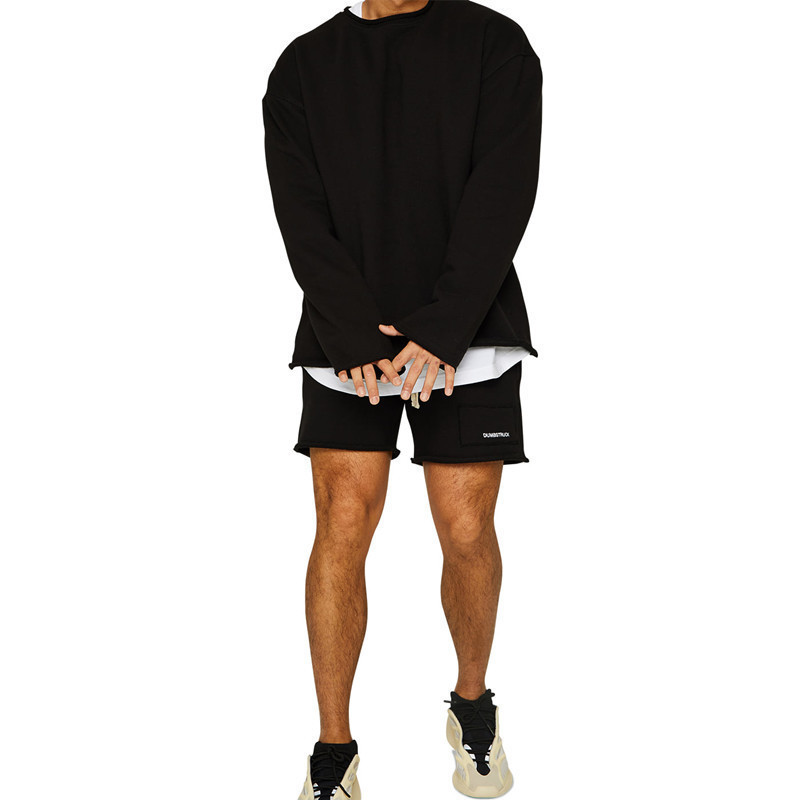 근육 피트니스 트렌디 브랜드 스포츠 트레이닝웨어 풀오버 스웨터 남성용 반바지 세트 느슨한 긴팔 모피 가장자리 탑 실행