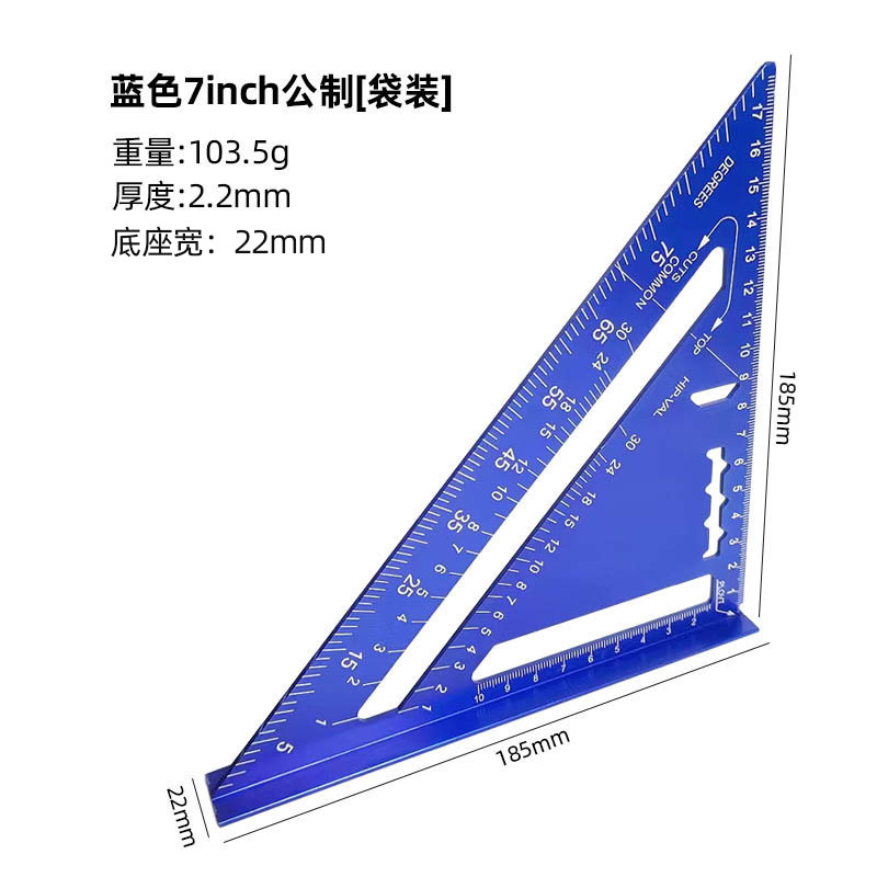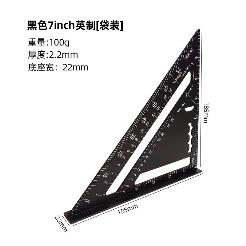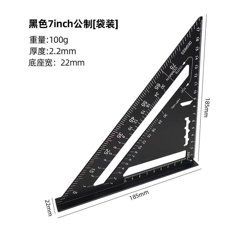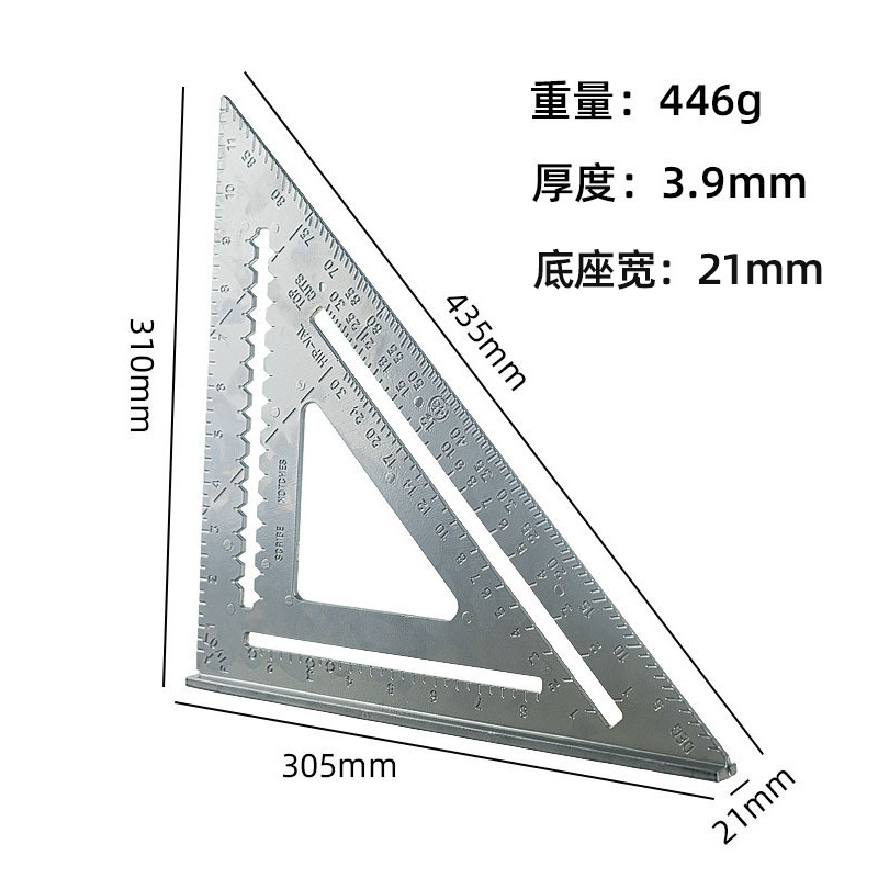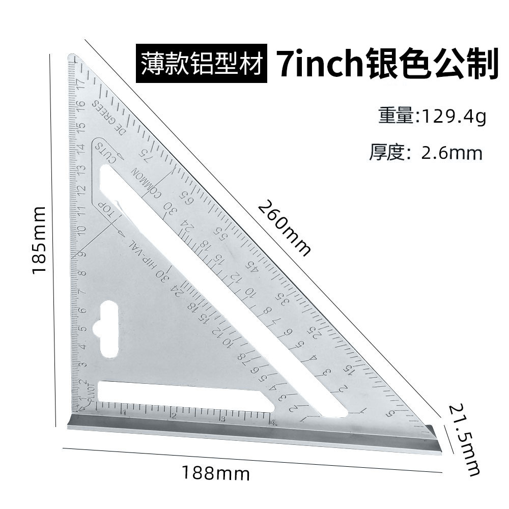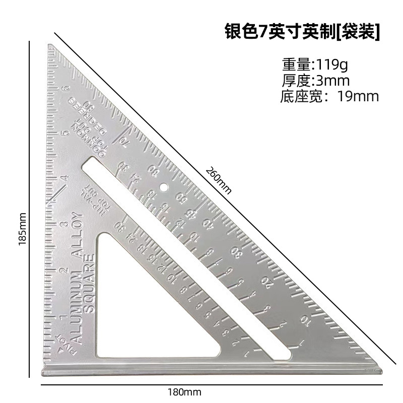 윤베이 실버 7 인치 삼각형 통치자 90 도 두꺼운 사각형 알루미늄 합금 목공 측정 직각 통치자