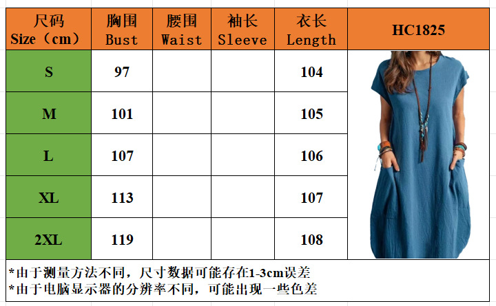 봄과 여름 2022 유럽과 미국 아마존 독립 역 이베이 면화와 린넨 느슨한 캐주얼 단색 포켓 원피스 여성스토어 가기
