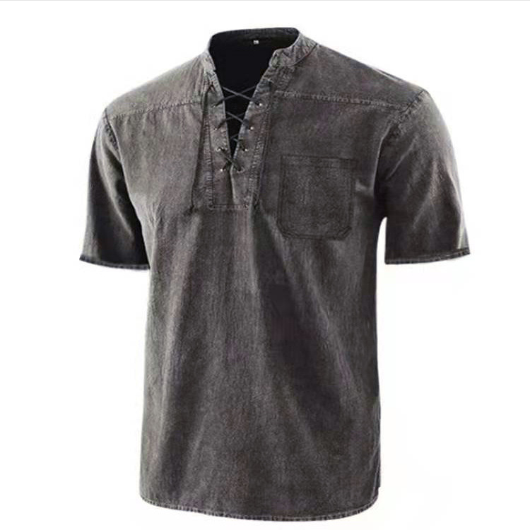 2022 아마존 신입 남성 반팔 셔츠 Eaby 중세 가스 아이 레이스 업 스탠드 칼라 남성 풀오버 셔츠스토어 가기