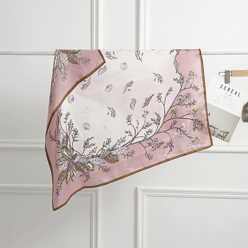 桑蚕丝丝巾 真丝大鱼海棠110春季法式复古大方巾女士防晒领巾腰带