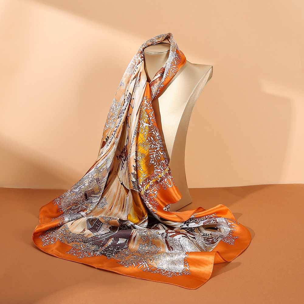 고급 센스 실크 스카프 90 봄과 가을 여성 대형 스퀘어 스카프 선스크린 새로운 스타일 일반 크레페 새틴 뽕나무 실크 고급 동행 행사스토어 가기