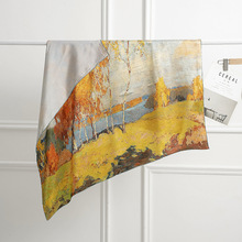 桑蚕丝丝巾真丝丝巾批发油画90春季法式复古大方巾女士防晒
