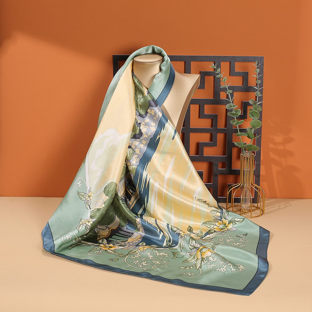 고급 센스 실크 스카프 90 봄과 가을 여성 대형 스퀘어 스카프 선스크린 새로운 스타일 일반 크레페 새틴 뽕나무 실크 고급 동행 행사