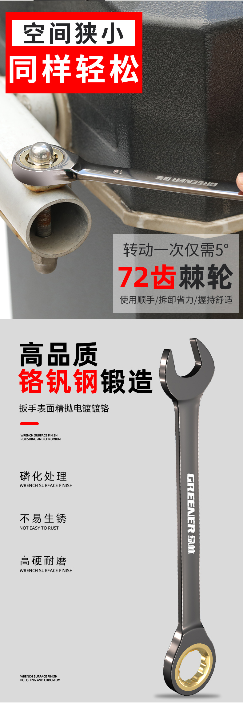 그린 포레스트 래칫 소형 퀵 렌치 노동 절약 알레그로 렌치 산업용 등급 오픈 더블 헤드 양방향 이중 목적 보드 도구스토어 가기
