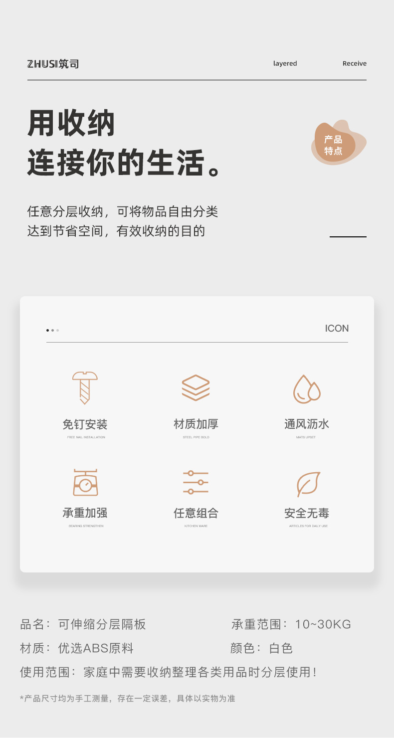 옷장 수납 레이어드 파티션 네일 프리 접착제 확장형 파티션 수납 랙 캐비닛 욕실 수납 랙스토어 가기