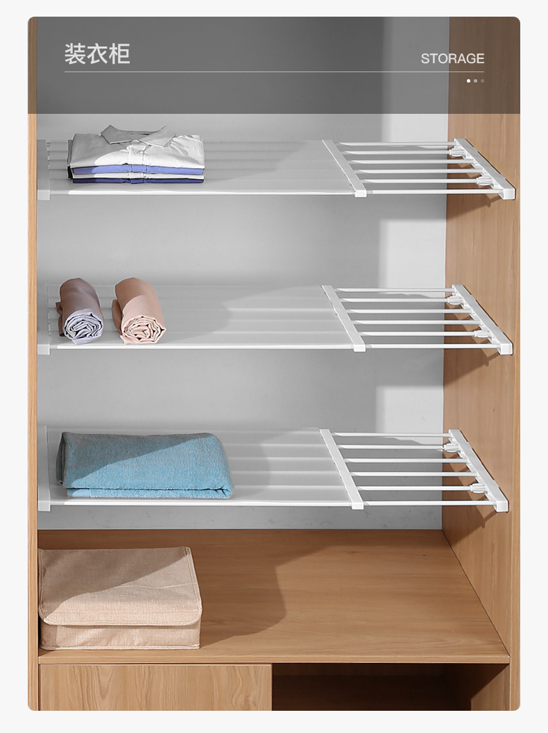옷장 수납 레이어드 파티션 네일 프리 접착제 확장형 파티션 수납 랙 캐비닛 욕실 수납 랙