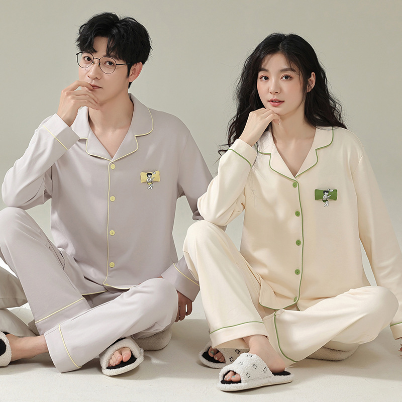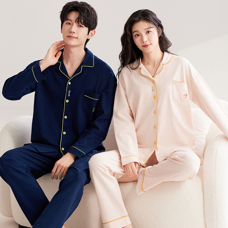 커플 잠옷 봄과 가을 스타일 여성 긴팔 남성과 여성 2025 새로운 한국 스타일 신선한 줄무늬 홈웨어 세트 패션스토어 가기