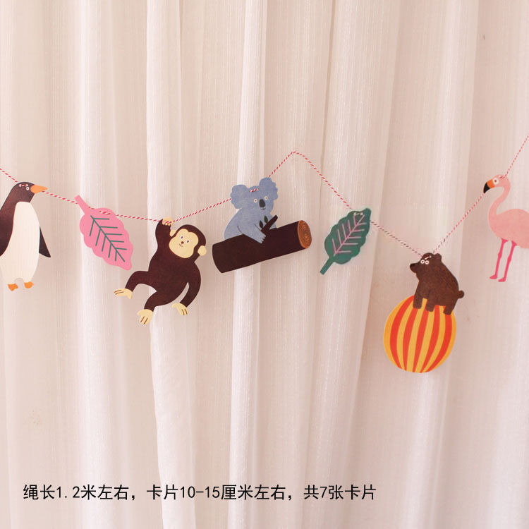 열대 우림 동물 깃발 원숭이 당겨 꽃 어린이 생일 파티 장식 유치원 오프닝 시즌 레이아웃 플래그