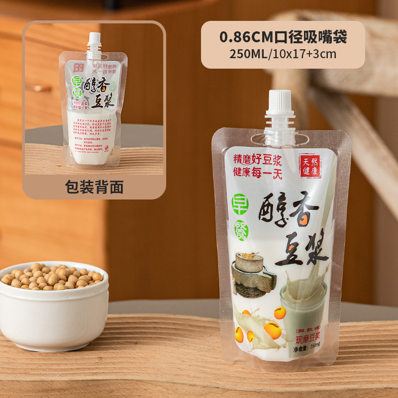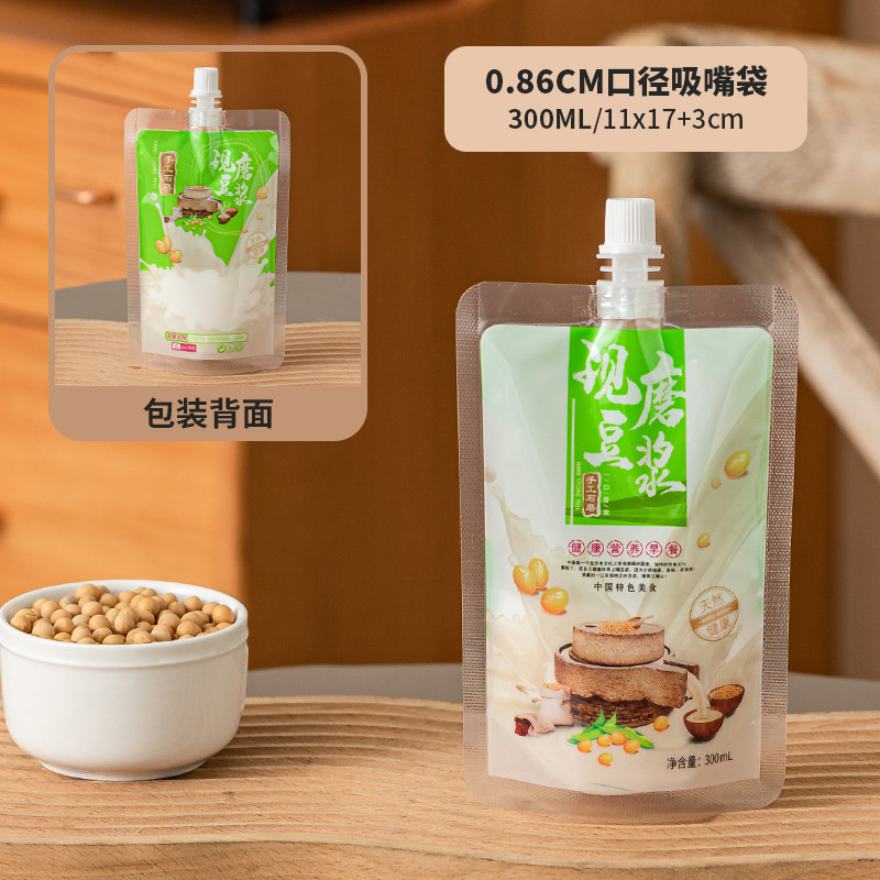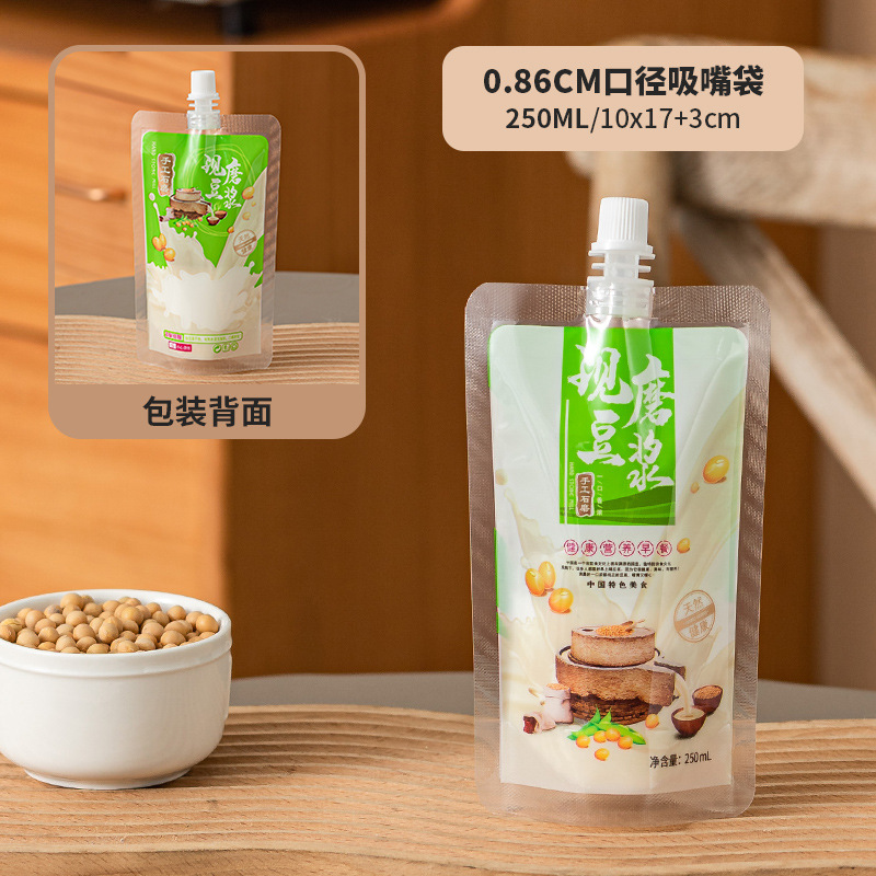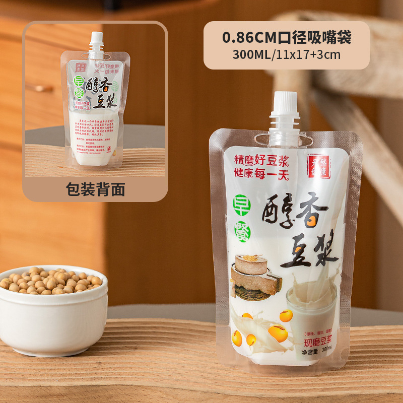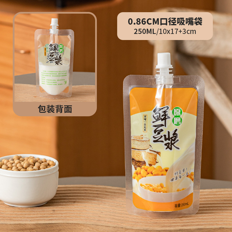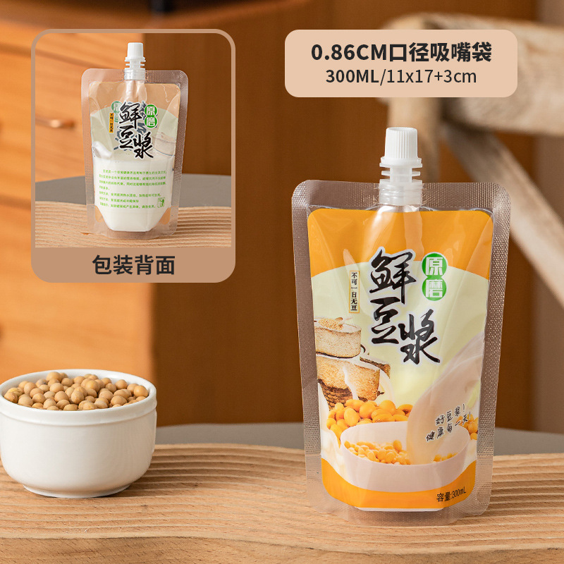 재고 투명 일회용 흡입 노즐 가방 우유 차 요구르트 두유 한약 액체 하위 포장 포장 가방 자체 지원 음료 가방