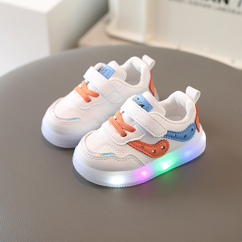 아기 신발 어린이 0-1-3-6 세 2 소년 작은 흰색 신발 밝은 라이트 보드 신발 캐주얼 신발 미끄럼 방지 부드러운 바닥 유아 신발 조수스토어 가기