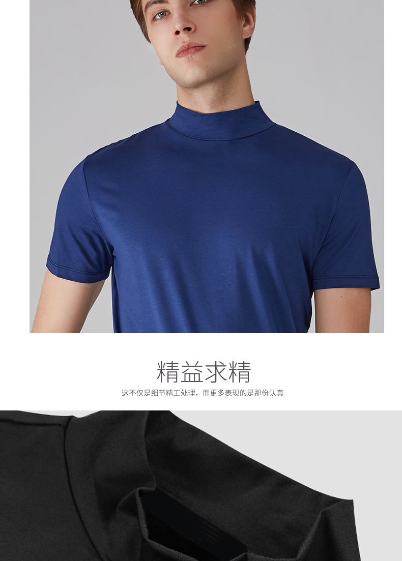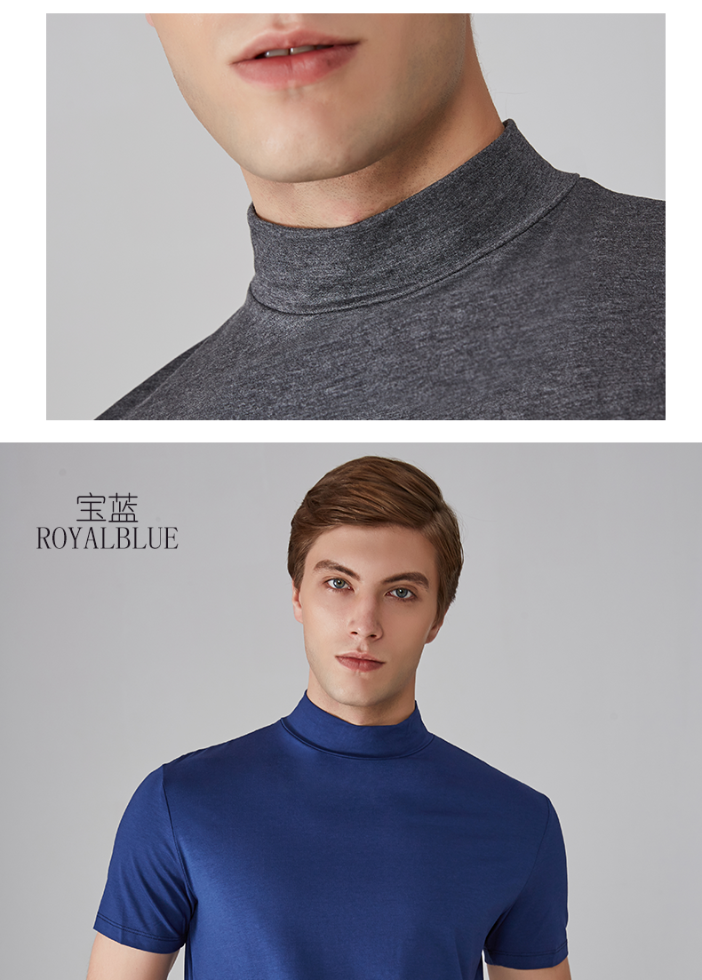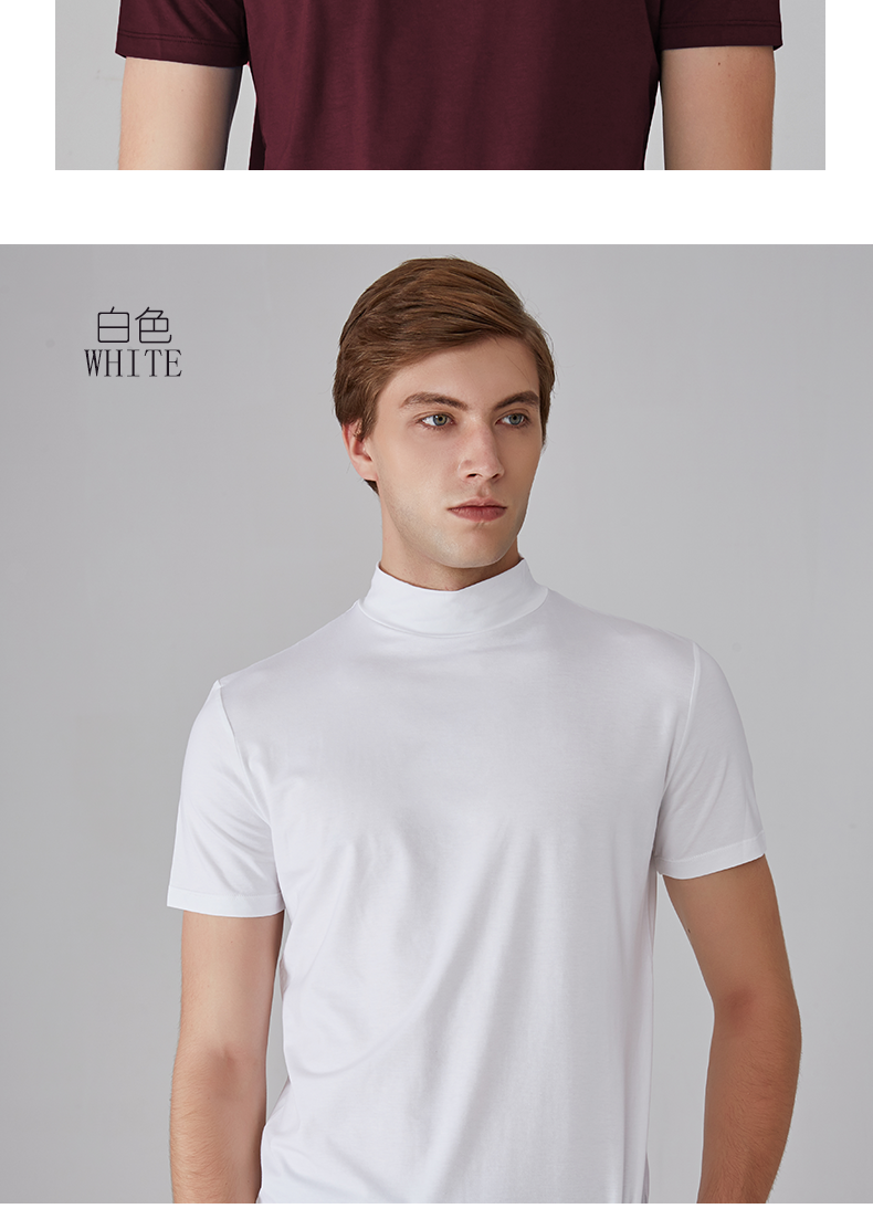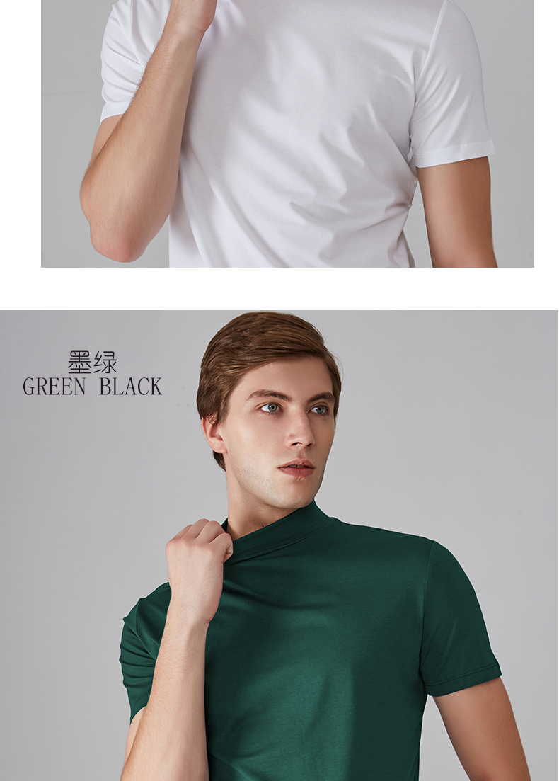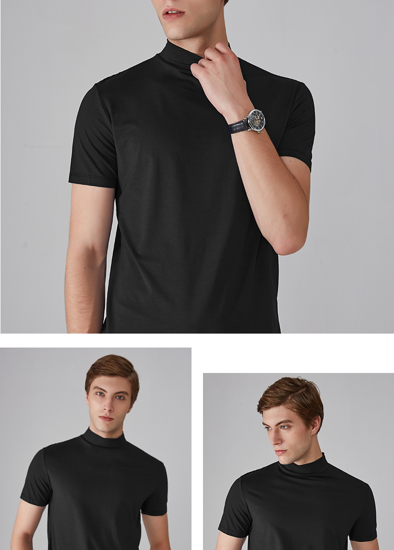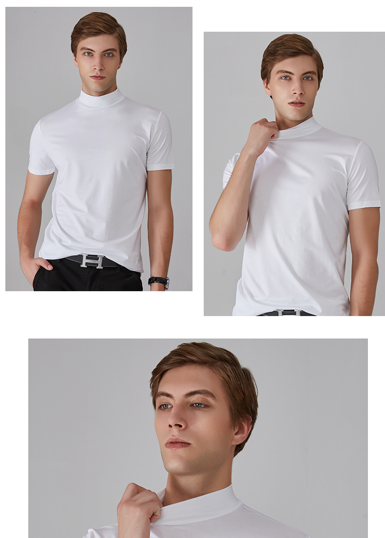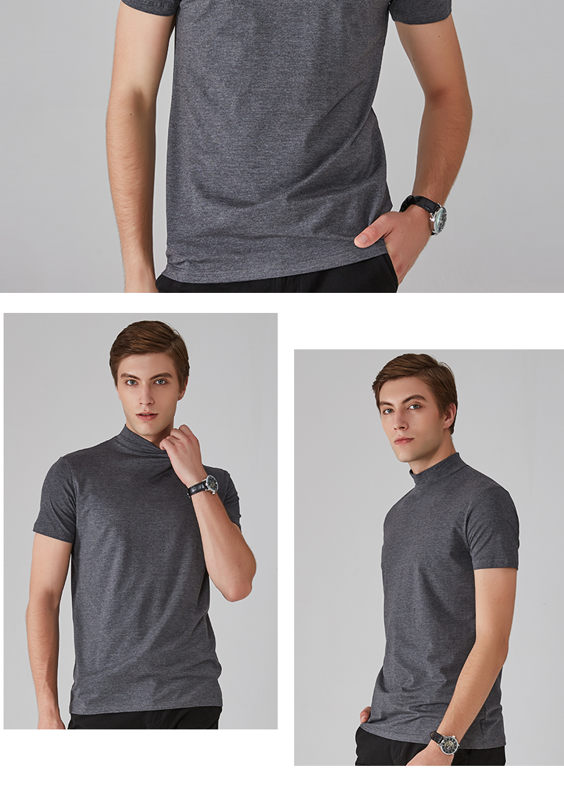 도매 대외 무역 남자의 작은 높은 칼라 짧은 소매 십대 티셔츠 중간 칼라 단색 반 높은 칼라 매일 반 소매 기본 셔츠스토어 가기