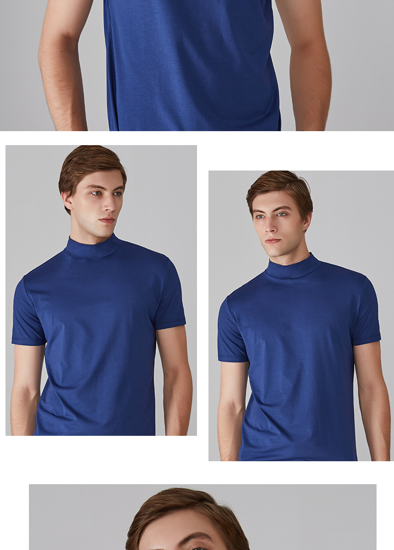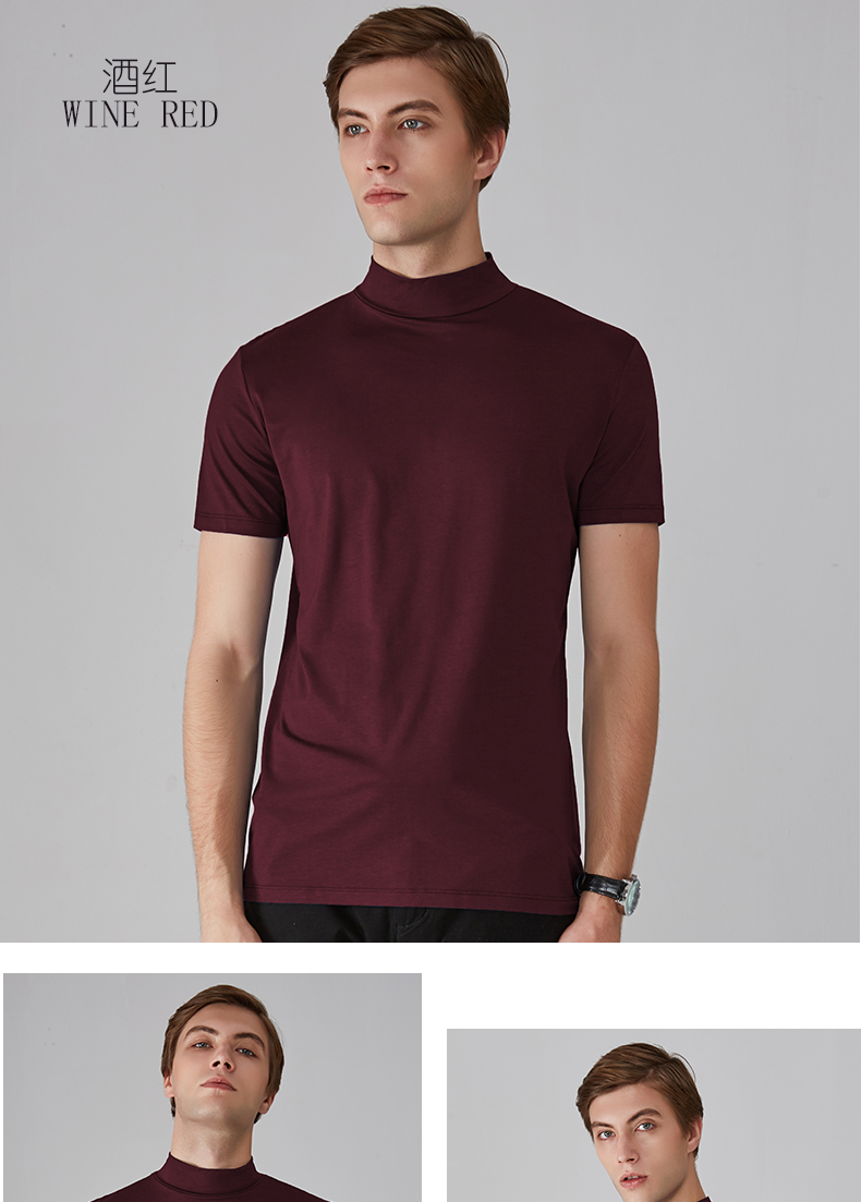 도매 대외 무역 남자의 작은 높은 칼라 짧은 소매 십대 티셔츠 중간 칼라 단색 반 높은 칼라 매일 반 소매 기본 셔츠