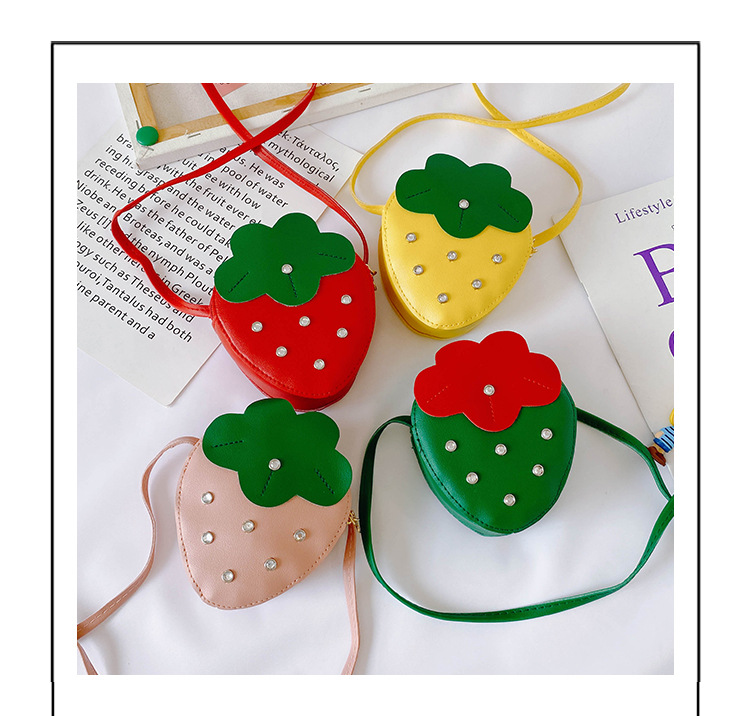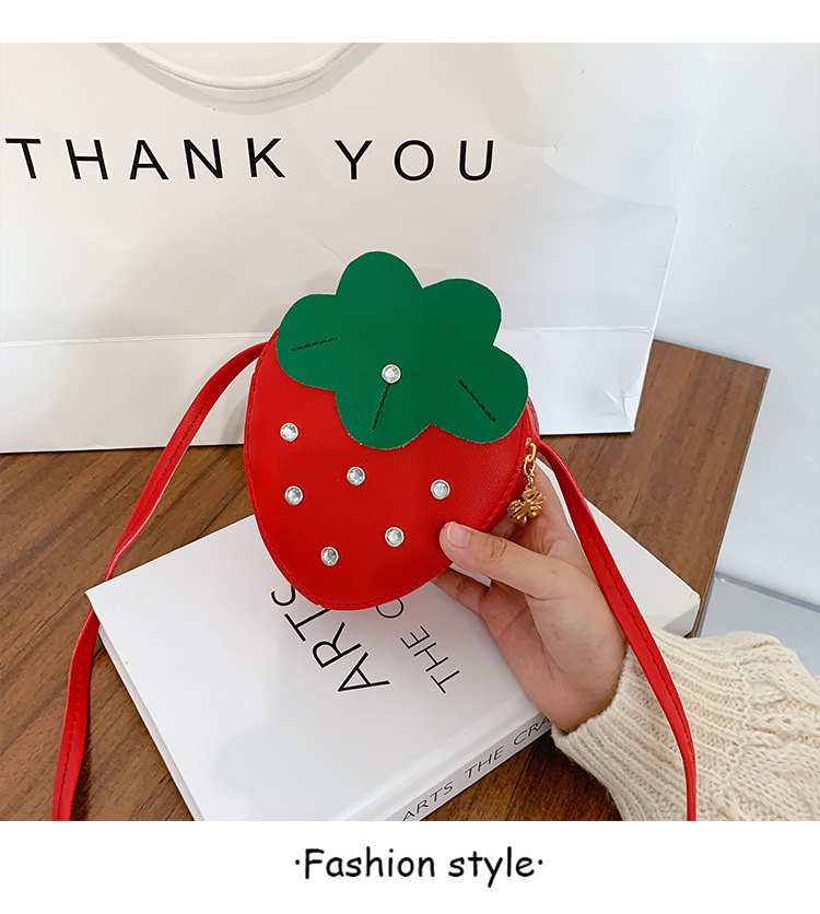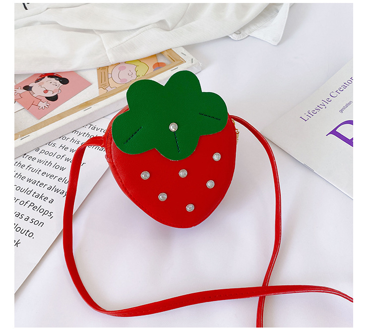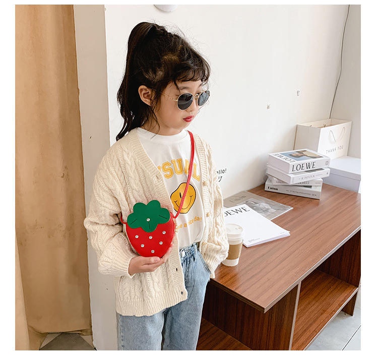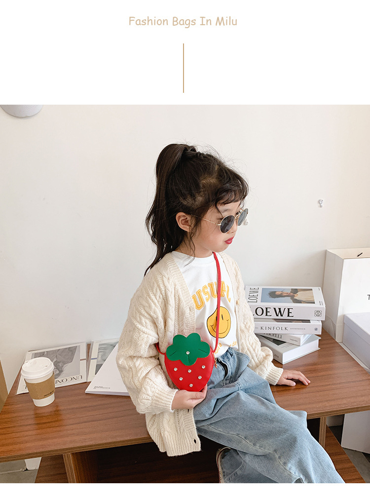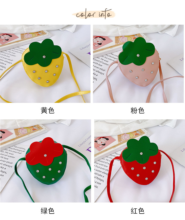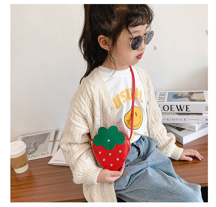 도매 PU 어린이 동전 지갑 2025 새로운 한국어 패션 리벳 과일 딸기 귀여운 공주 가방 메신저 가방스토어 가기