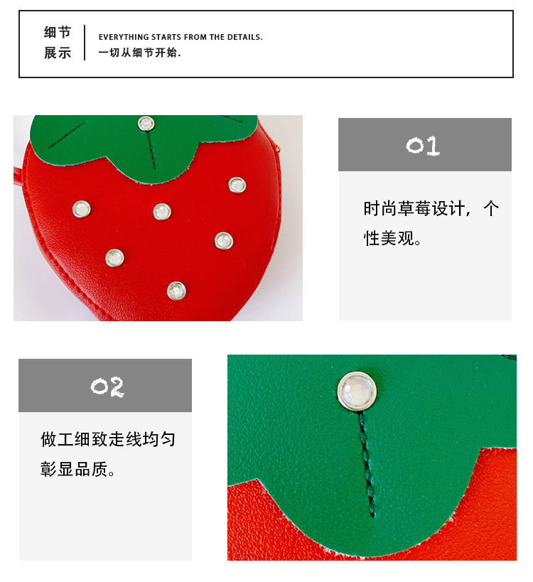 도매 PU 어린이 동전 지갑 2025 새로운 한국어 패션 리벳 과일 딸기 귀여운 공주 가방 메신저 가방