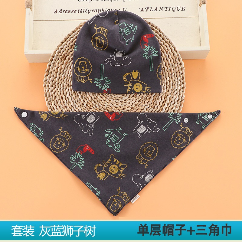 • 단층 모자 삼각형 수건: 회색 파랑 사자 나무