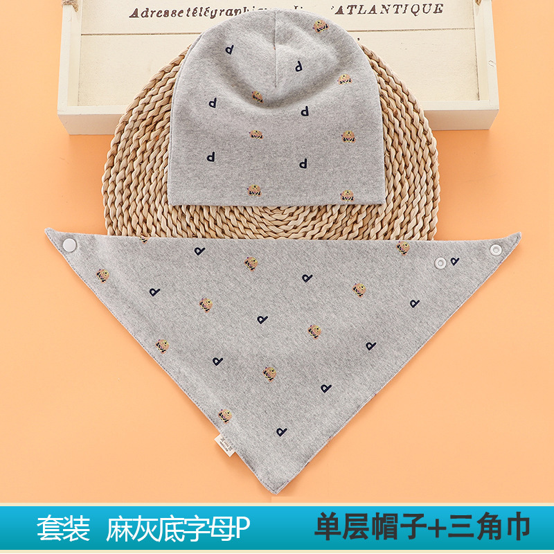 • 단층 모자 삼각형 수건: 대마 회색 하단 문자 P