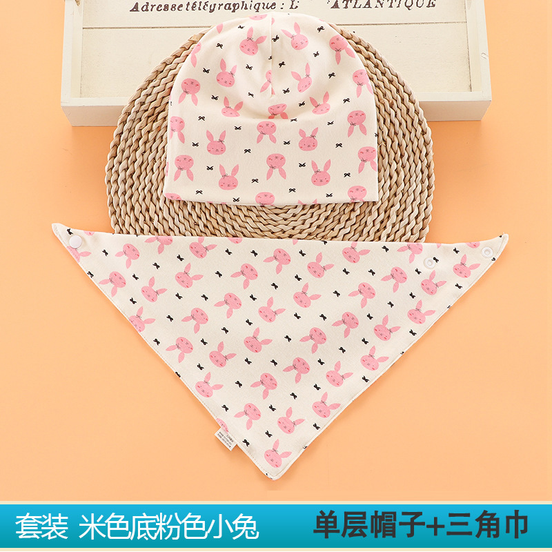 • 단층 모자 삼각형 수건: 베이지 색 바닥 핑크 토끼