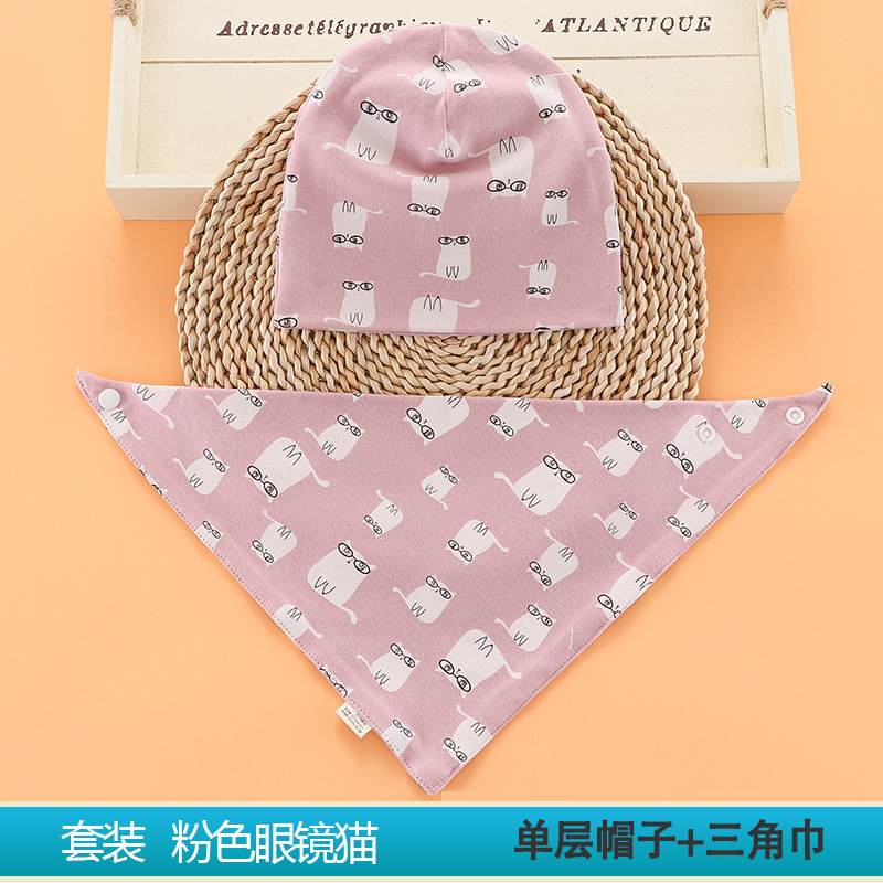 • 단층 모자 삼각형 수건: 핑크 안경 고양이