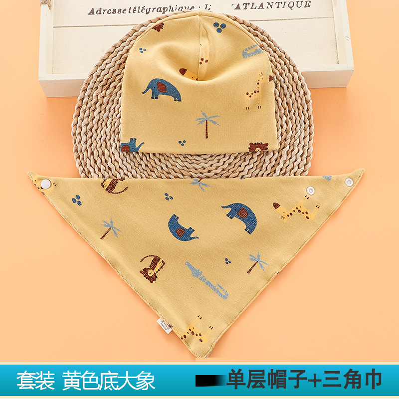 • 단층 모자 삼각형 수건: 노란색 바닥 코끼리