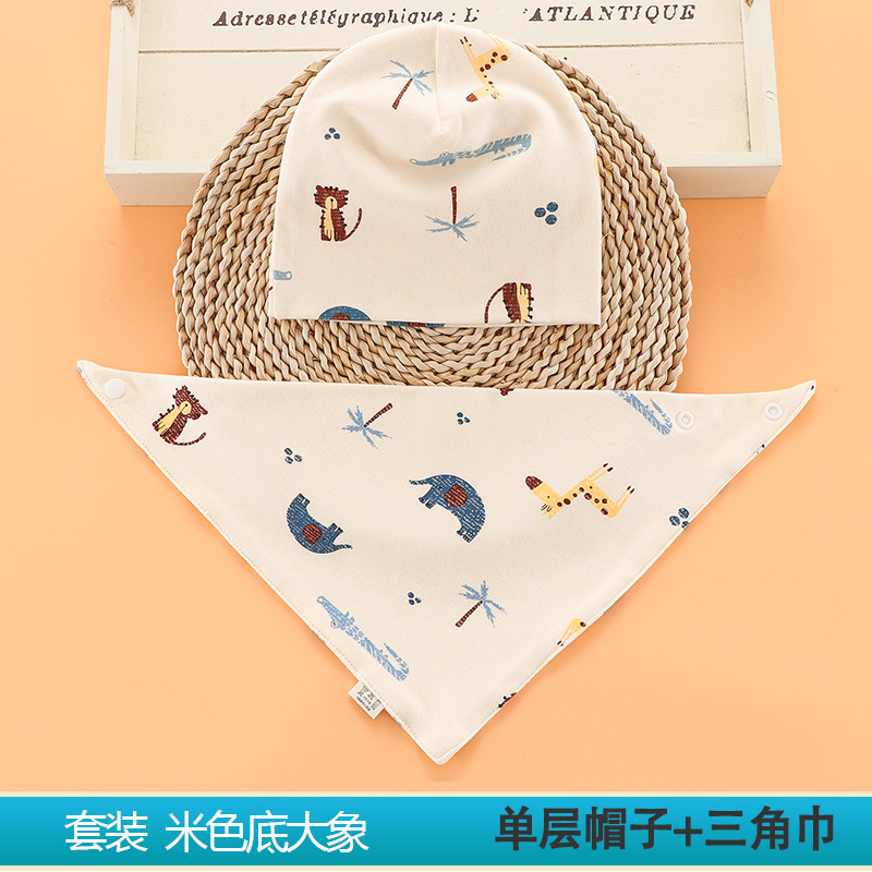• 단층 모자 삼각형 수건: 베이지 색 바닥 코끼리