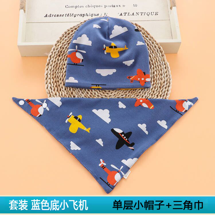 • 단층 모자 삼각형 수건: 파란색 바닥 작은 비행기