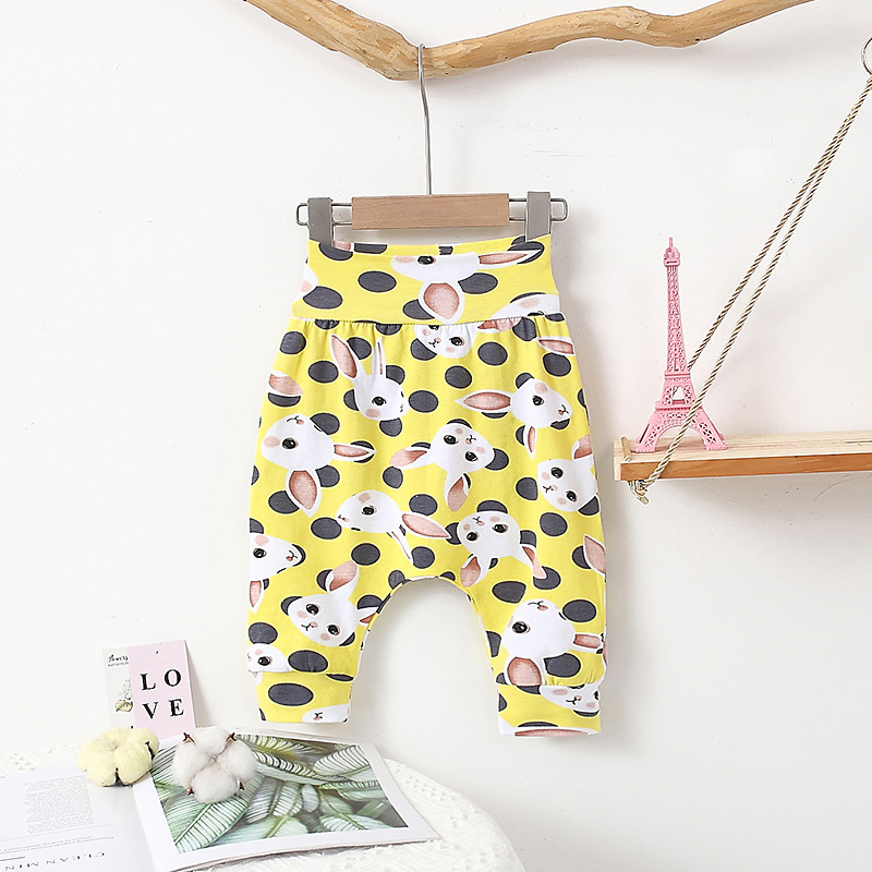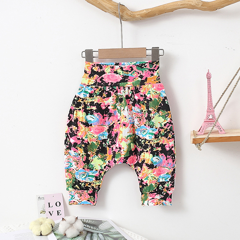 2023 봄 아기의 큰 엉덩이 바지 면 인쇄 아기 할란 바지 캐주얼 큰 PP 바지 소년 소녀 바지