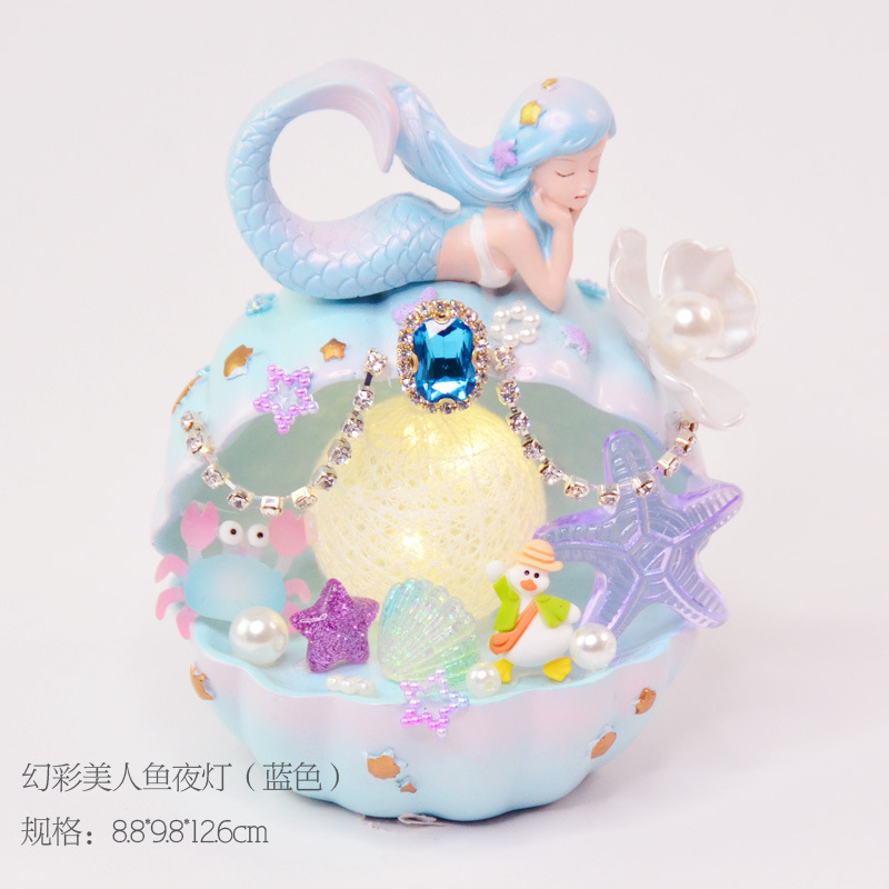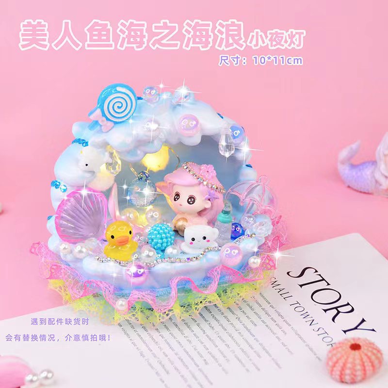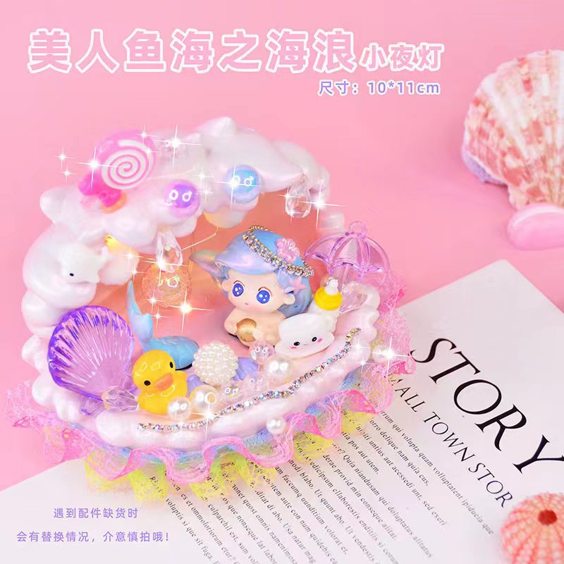 인어 조개 야간 조명 어린이 수제 DIY 제작 재료 가방 쉘 램프 장식품 교육 완구 도매스토어 가기