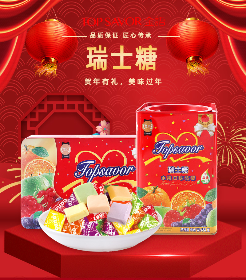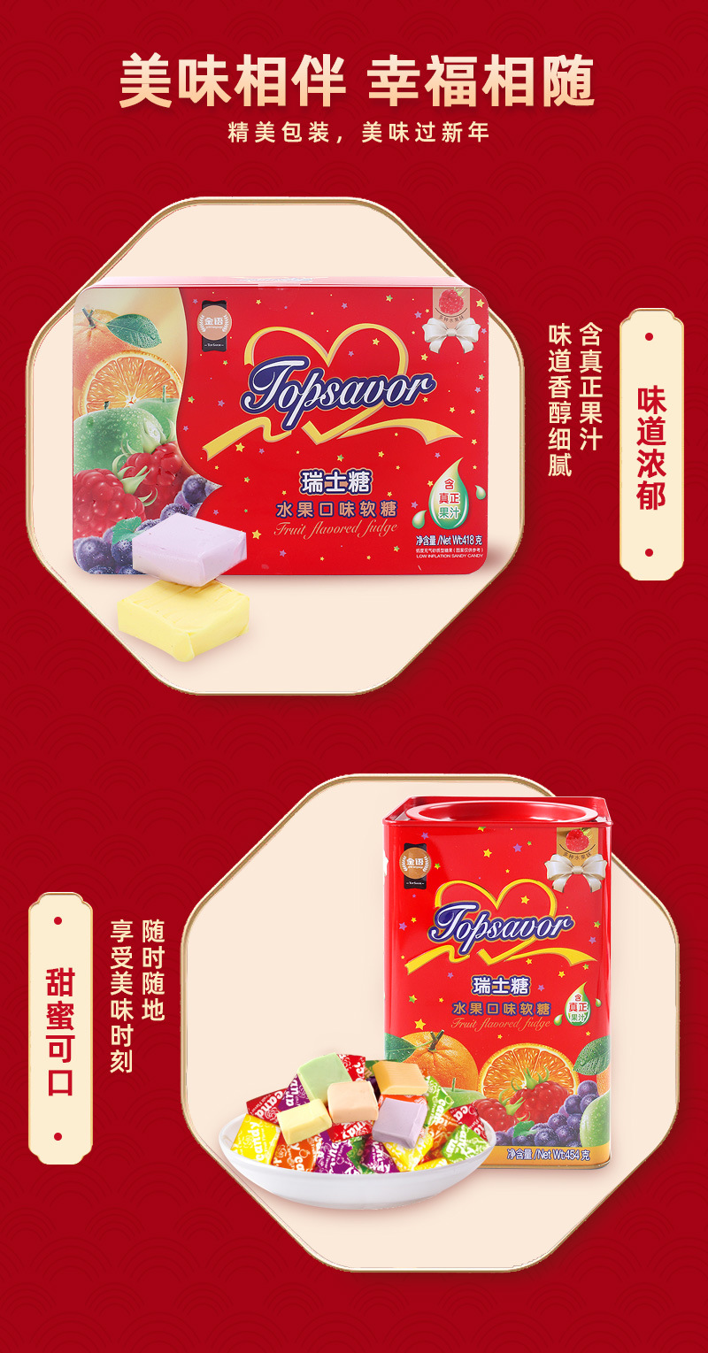 신년 식품 도매 골드 스위스 설탕 418G 선물 상자 454g 과일 주스 맛 젤리스토어 가기