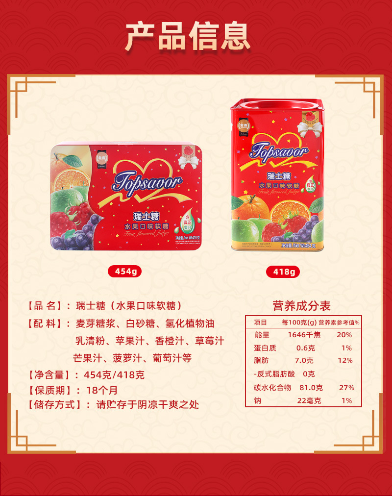 신년 식품 도매 골드 스위스 설탕 418G 선물 상자 454g 과일 주스 맛 젤리