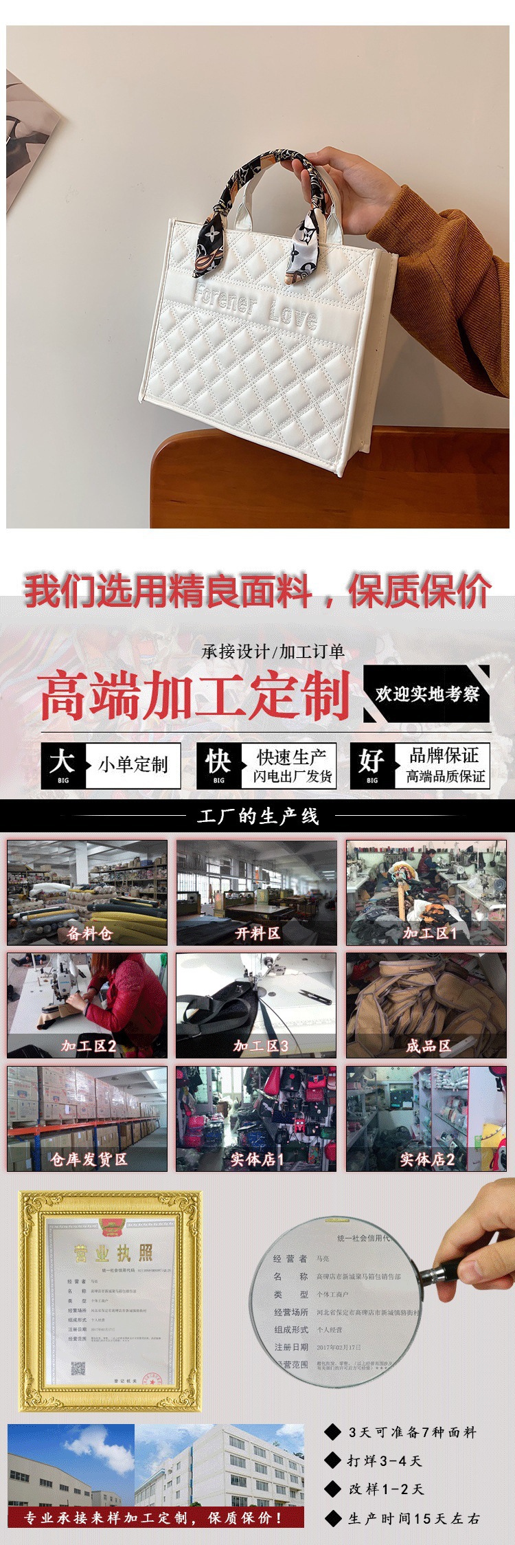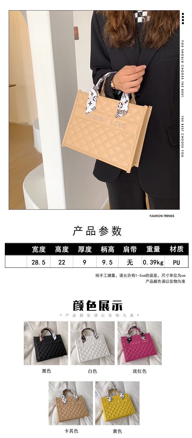 국경 간 대외 무역 유럽과 미국 여성 가방 2021 새로운 샤넬 스타일 대용량 실크 스카프 핸드백 편지 마름모 토트 백