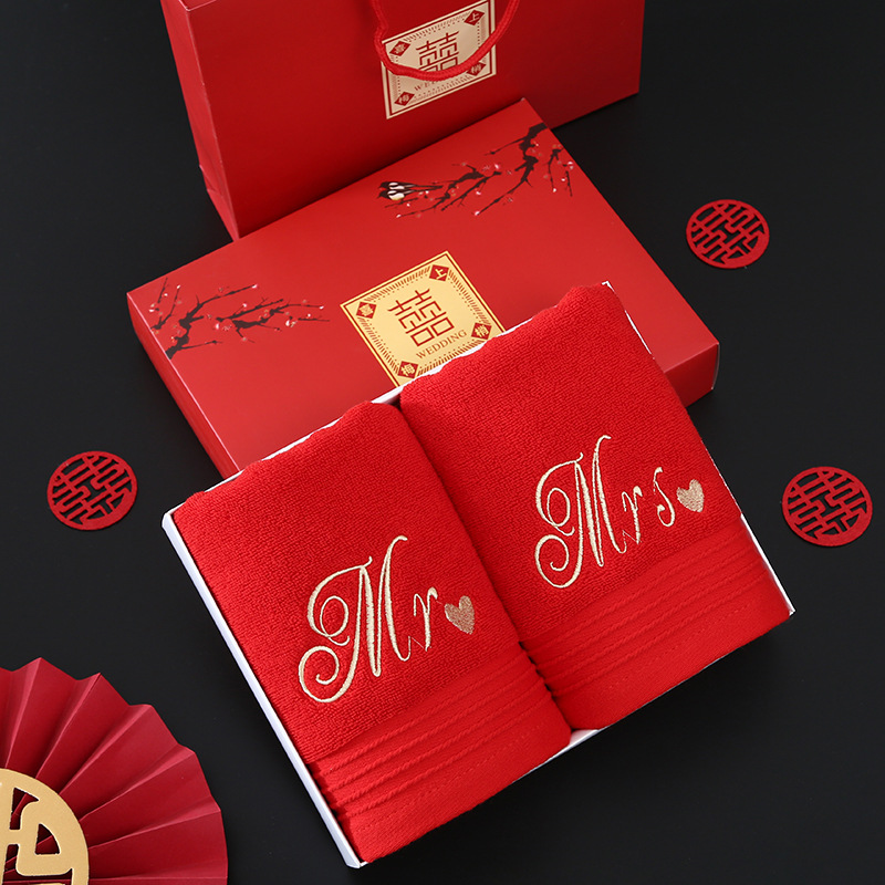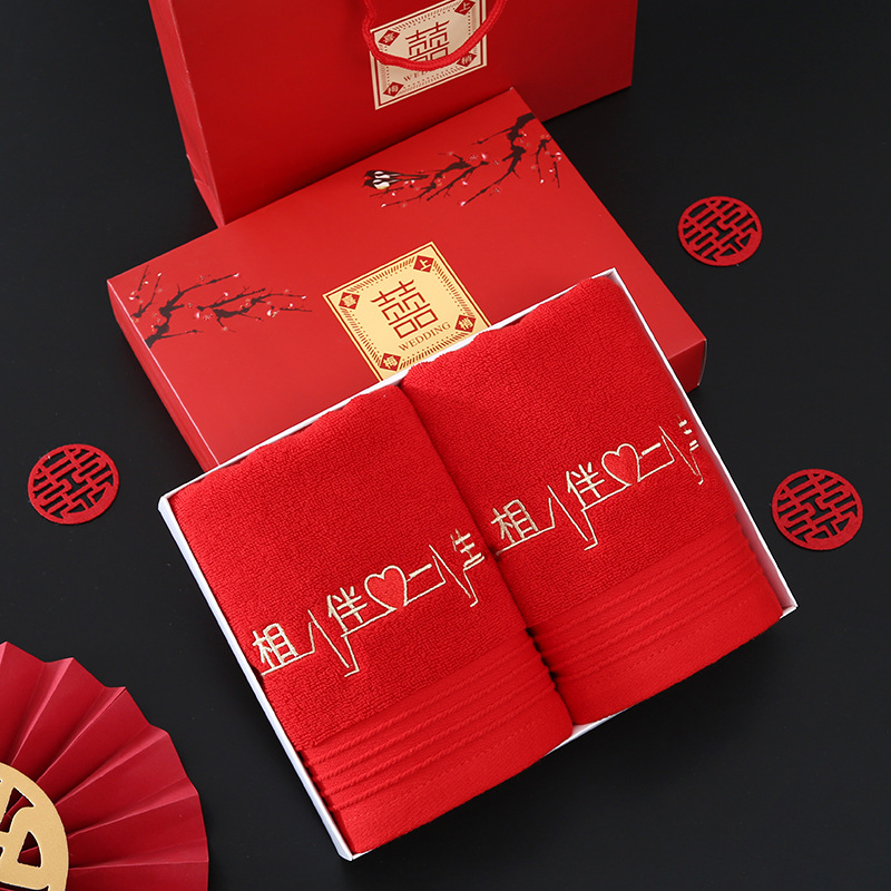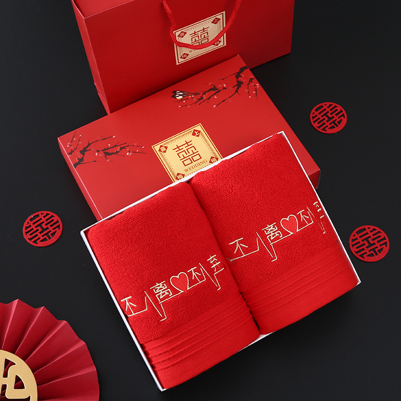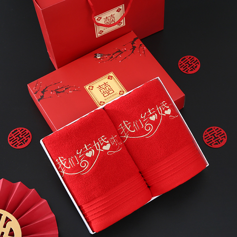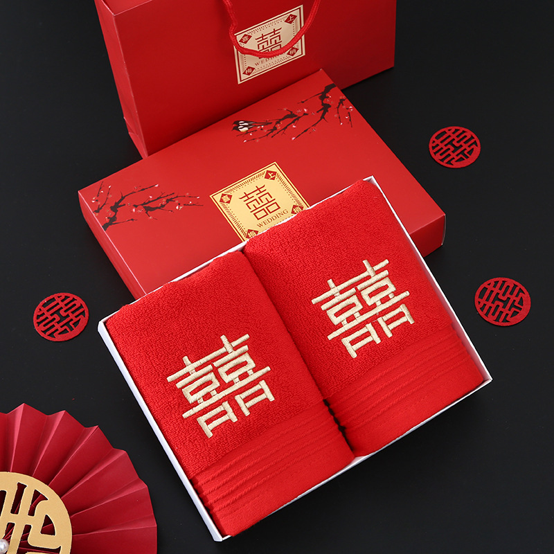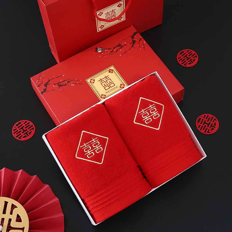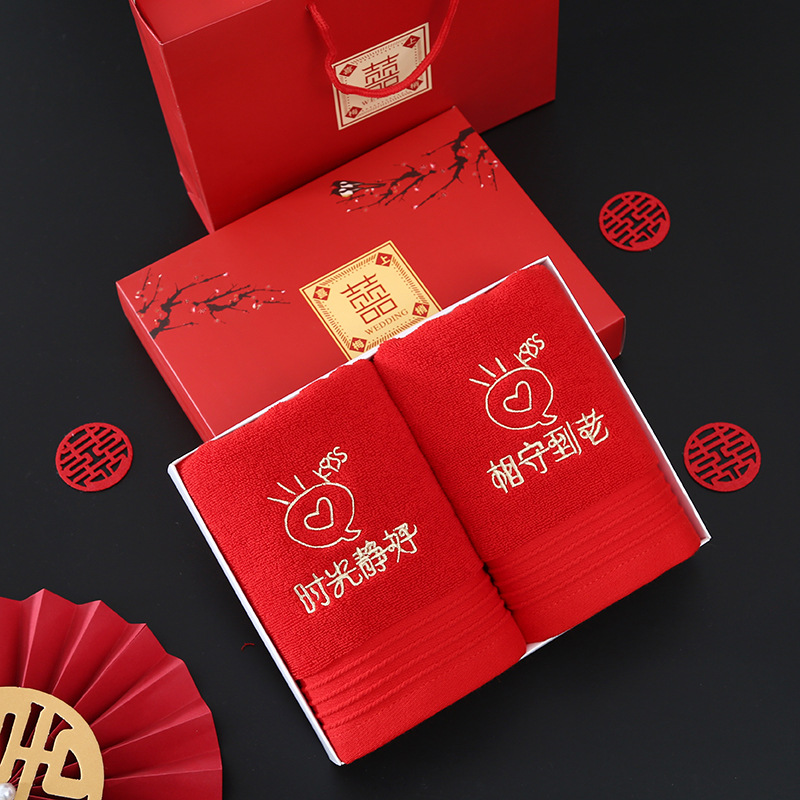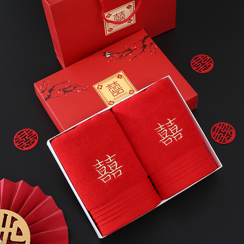 결혼식 빨간 수건 선물 상자 결혼식 빨간 편지 얼굴 수건 결혼식 손 선물 결혼식 면 수건 선물 상자