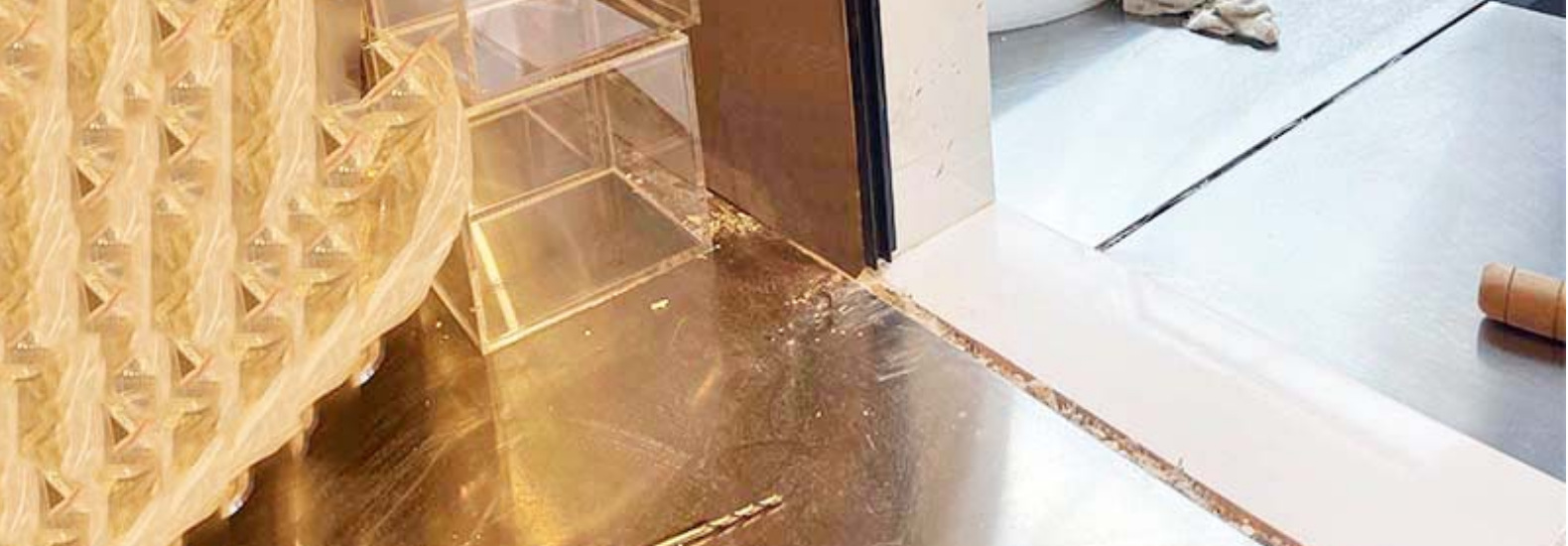 • 회색 및 흰색 도어 커튼 블랙 플레이트