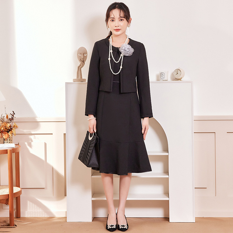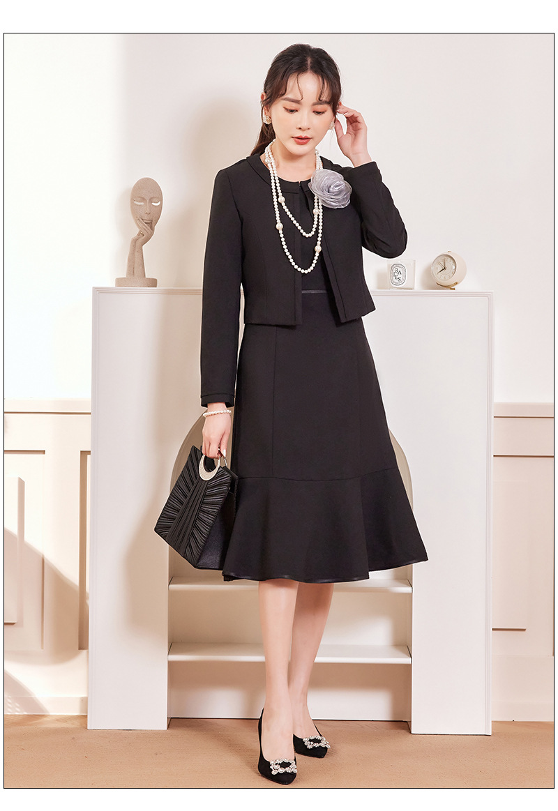 Cui Ying cuiing 여자의 단색 세트 재킷 긴 소매 원피스 기질 통근 세트 88520