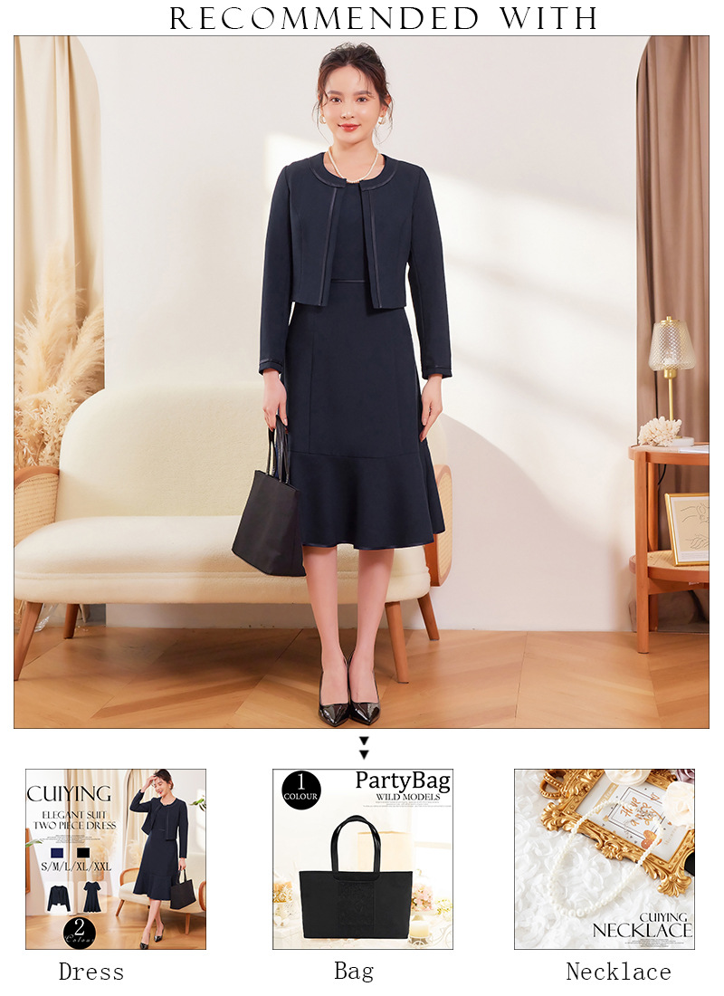 Cui Ying cuiing 여자의 단색 세트 재킷 긴 소매 원피스 기질 통근 세트 88520스토어 가기