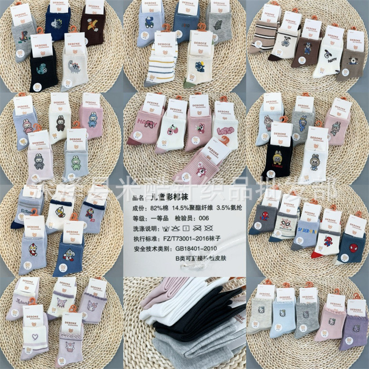 어린이 양말 가을 겨울 신상 남녀 아동 중목 양말 만화 귀여운 1-12세 중대형 어린이 양말 도매
