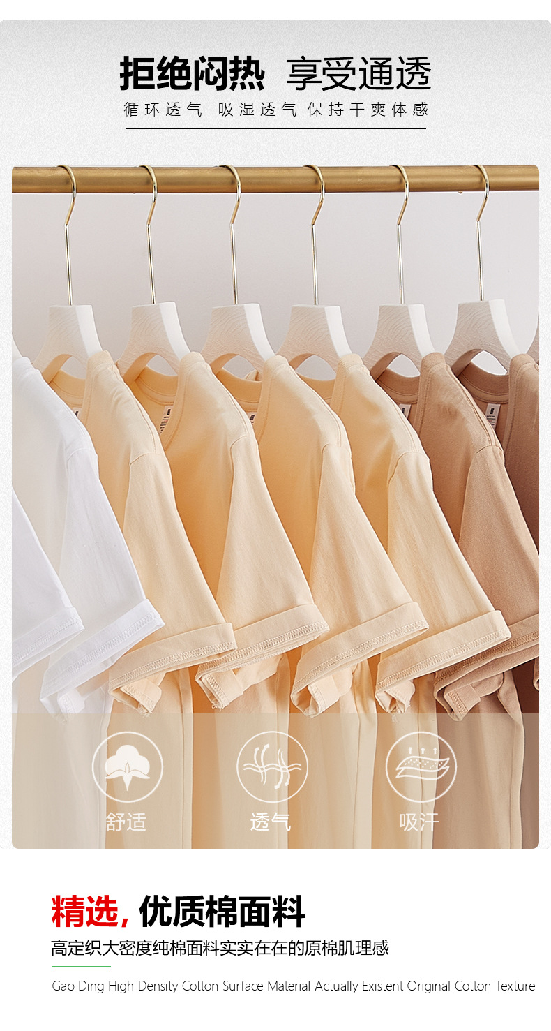 230g 퓨어 화이트 캐주얼 느슨한 조커 크루 넥 여성용 반팔 무거운면 통근 반 소매 바닥 셔츠 옷스토어 가기