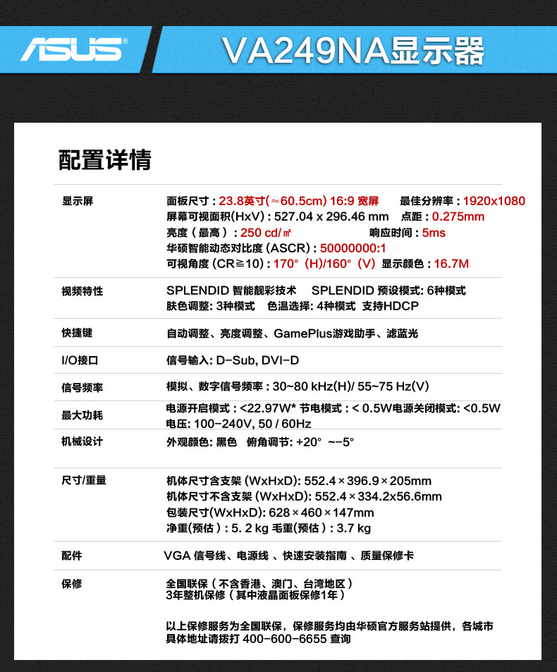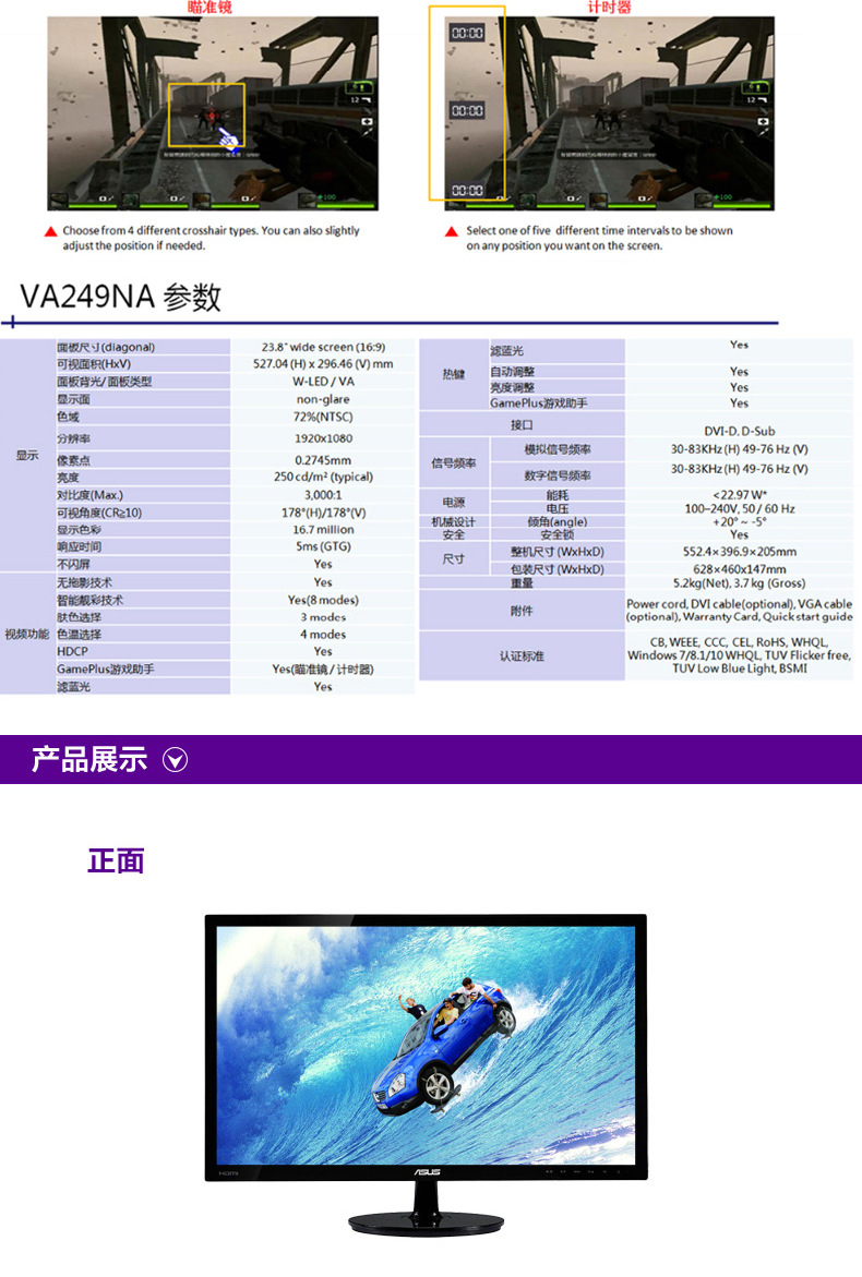 VA249NA 23.8 인치 컴퓨터 호스트 LCD 모니터 LED 백라이트 눈 보호 와이드 스크린 디스플레이스토어 가기