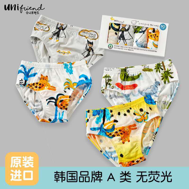 유니프렌드 신상 한국판 아동 속옷 남아 여아 만화 삼각팬티 면 속옷