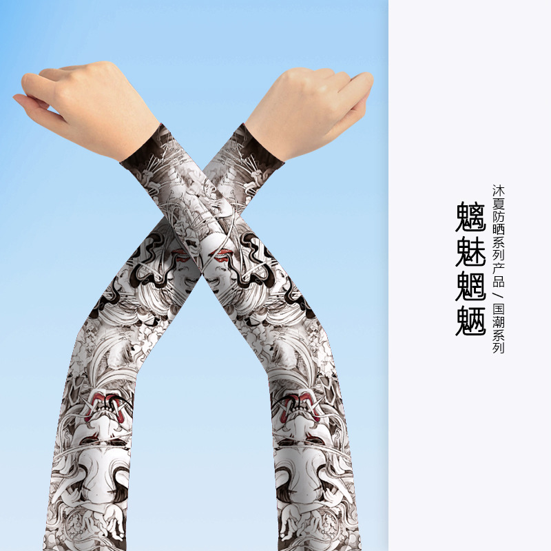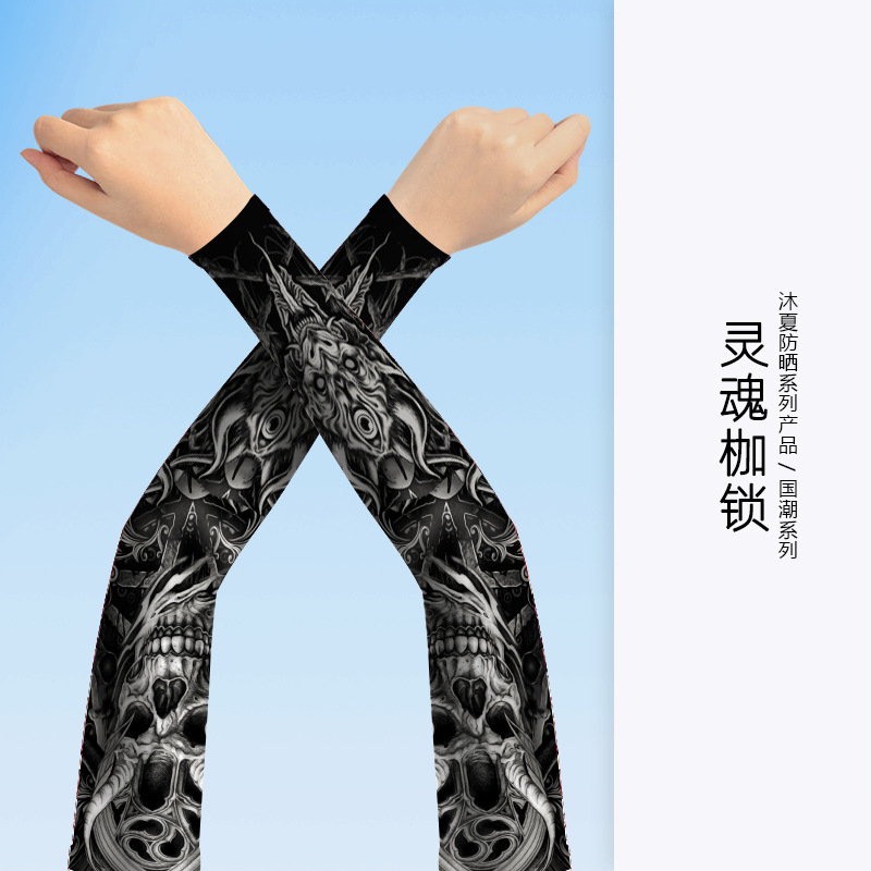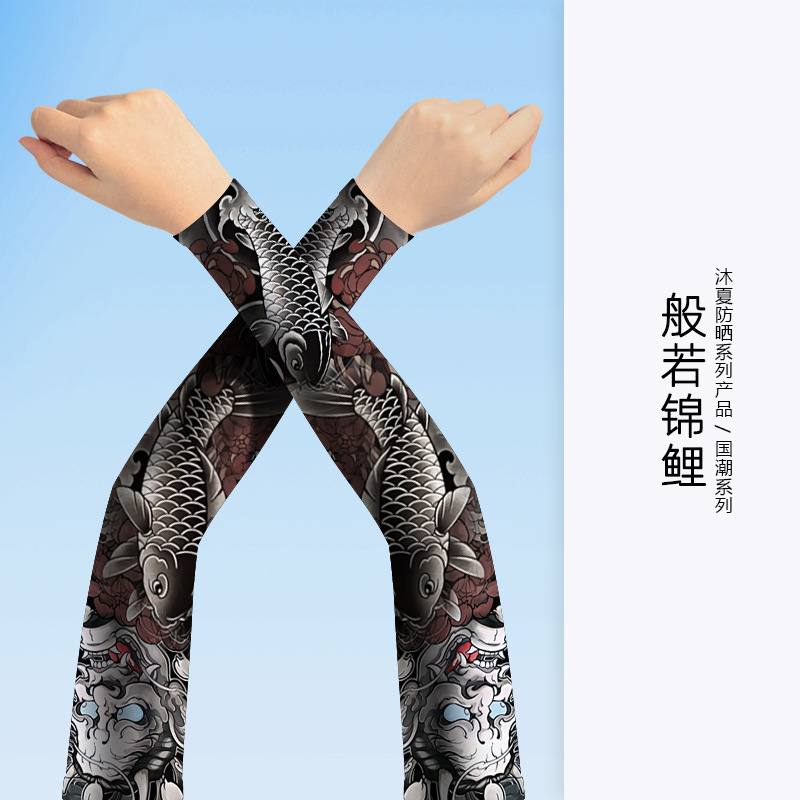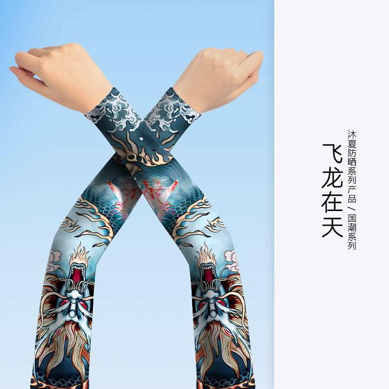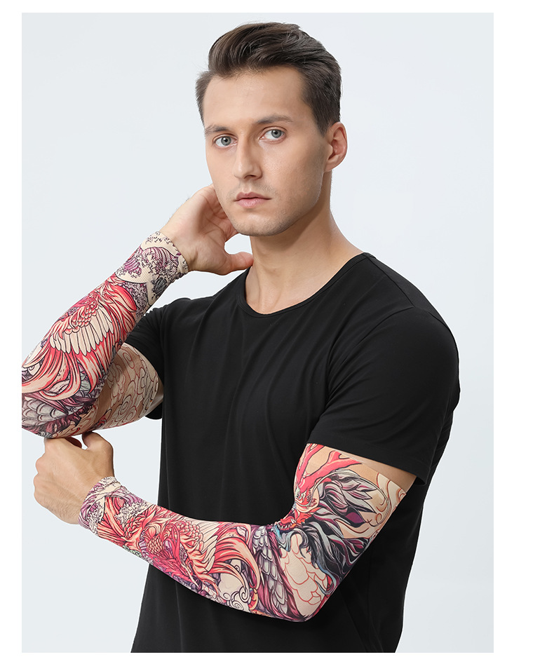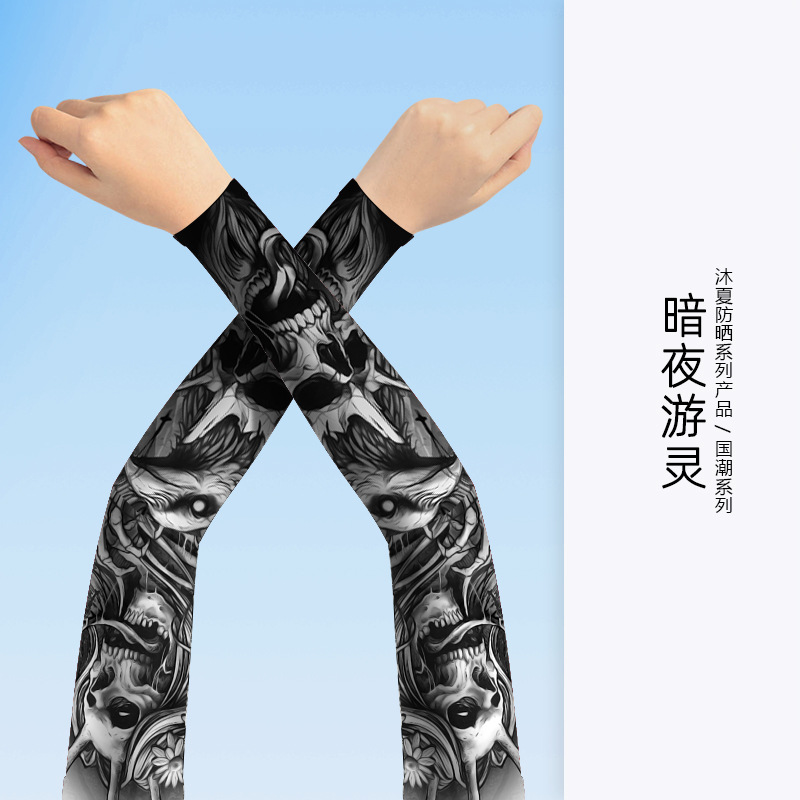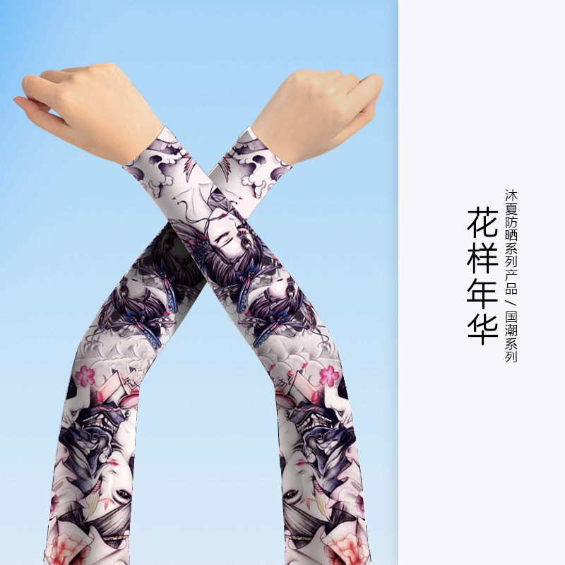 MEETSUNNY 여름 자외선 차단제 아이스 슬리브 남성용 국가 패션 플라워 암 이음매없는 얼음 실크 문신 슬리브 야외 사이클링 팔 보호대