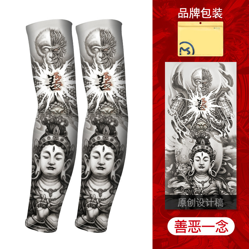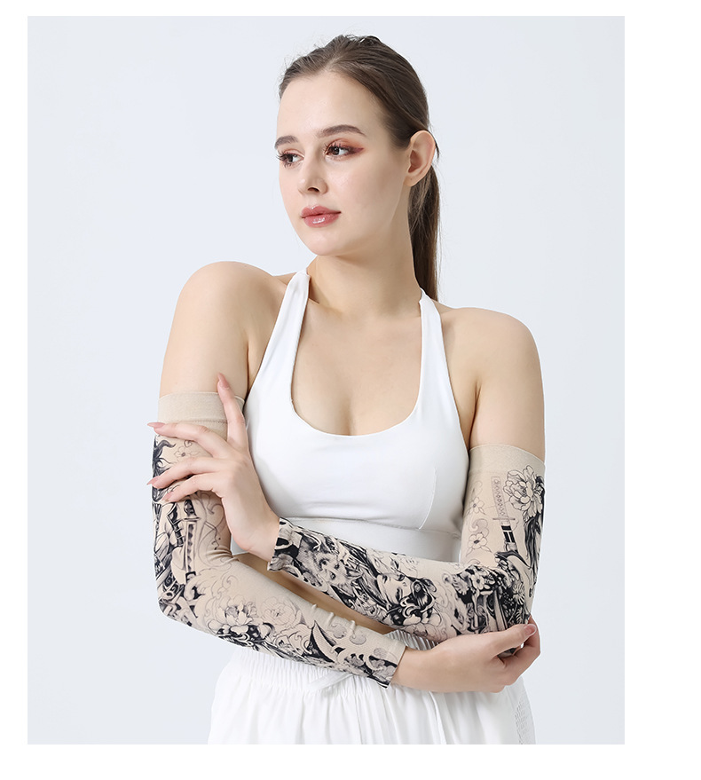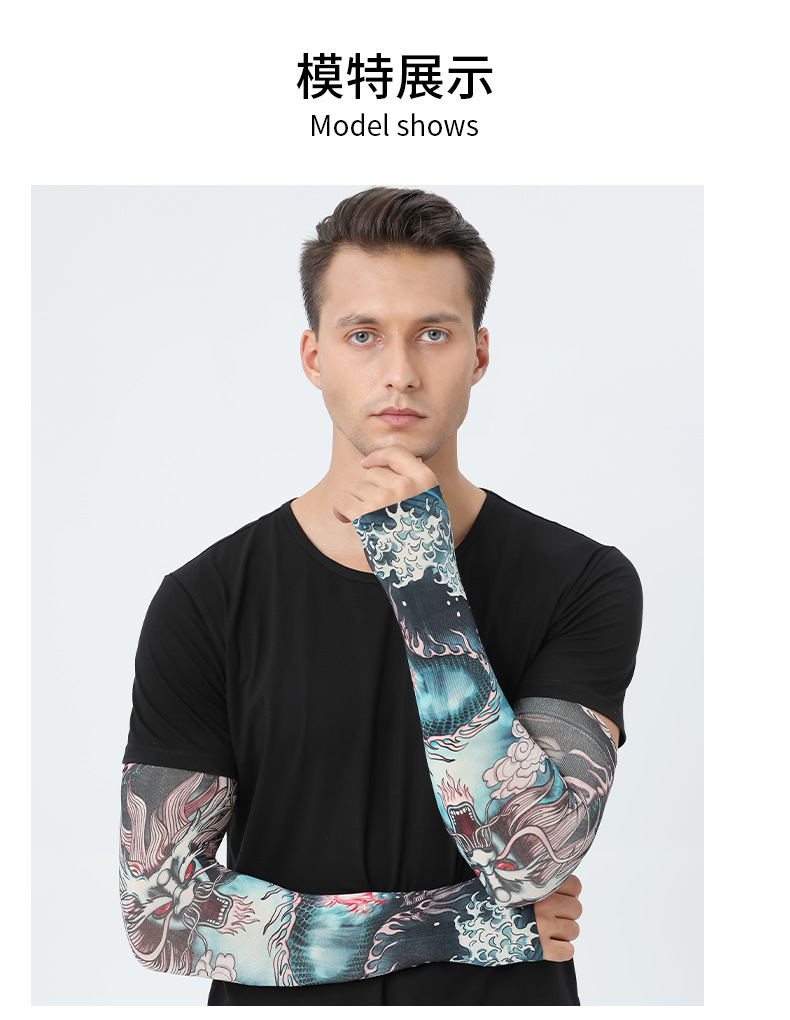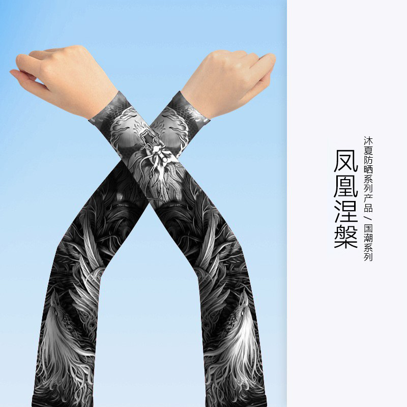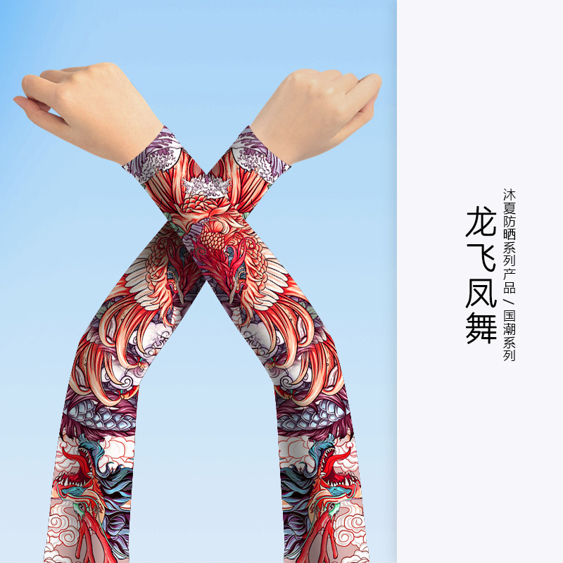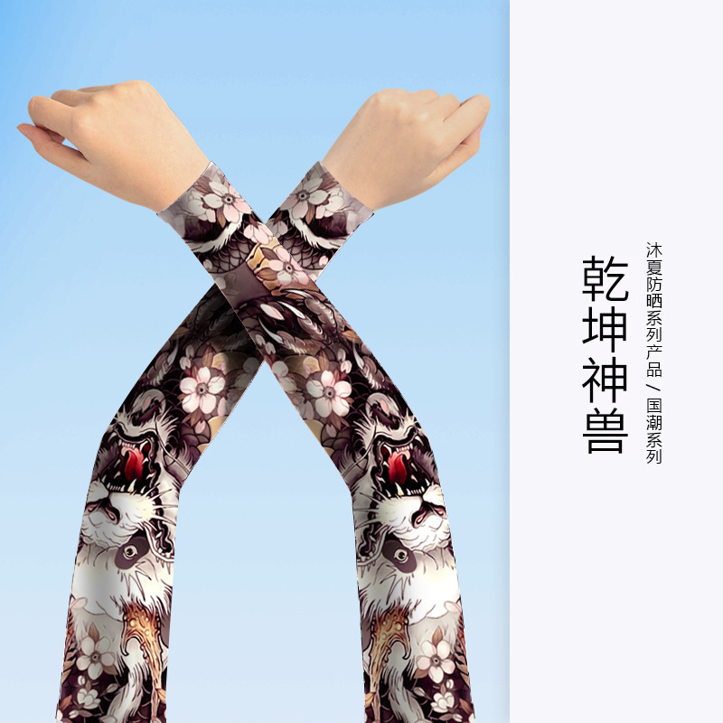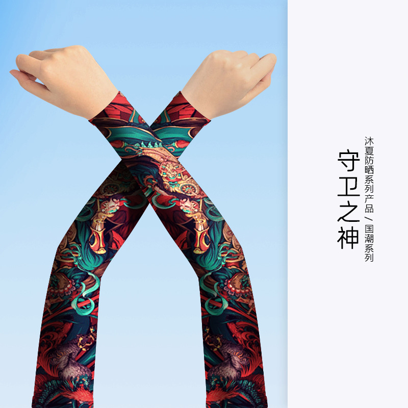 MEETSUNNY 여름 자외선 차단제 아이스 슬리브 남성용 국가 패션 플라워 암 이음매없는 얼음 실크 문신 슬리브 야외 사이클링 팔 보호대