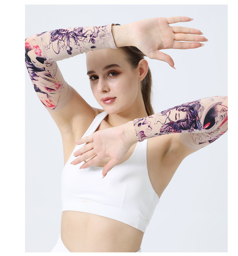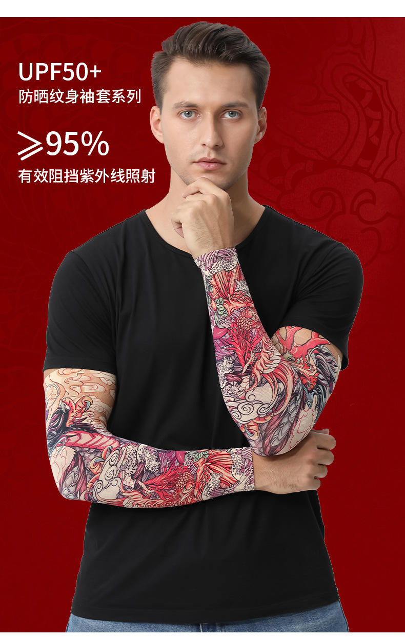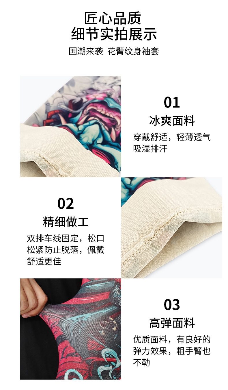 MEETSUNNY 여름 자외선 차단제 아이스 슬리브 남성용 국가 패션 플라워 암 이음매없는 얼음 실크 문신 슬리브 야외 사이클링 팔 보호대스토어 가기