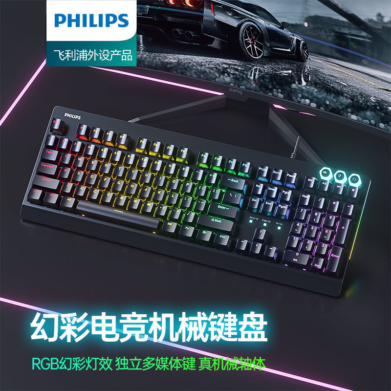 필립스 Philips SPK8307 기계식 키보드 치킨 e-스포츠 게임 RGB 다채로운 발광 유선 키보드