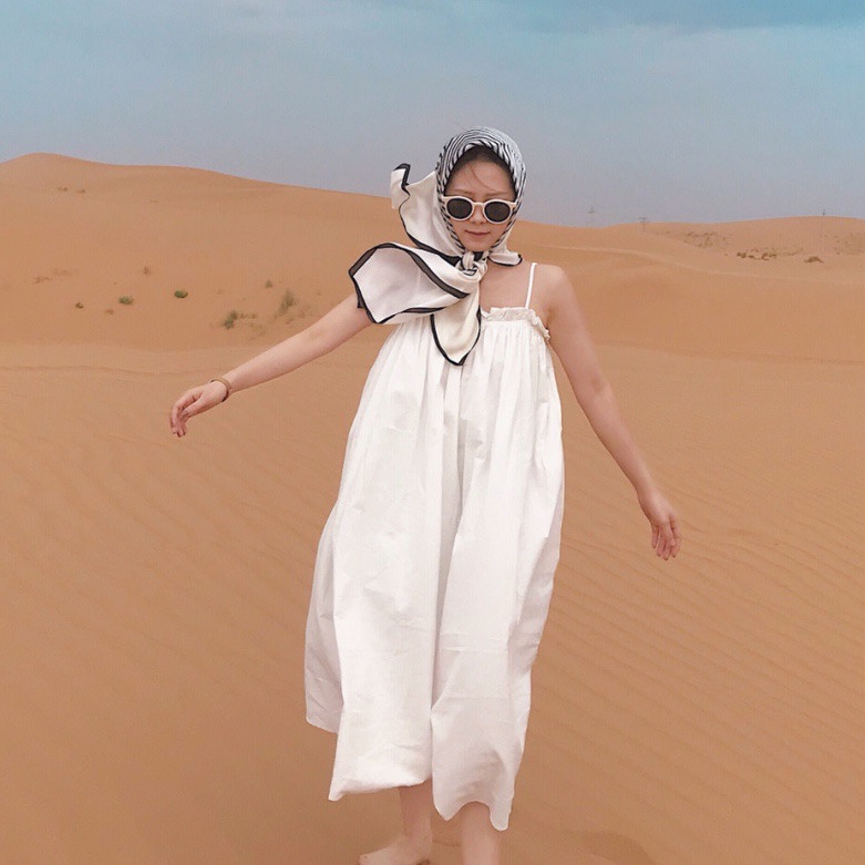 패션 스카프 작은 사각 스카프 숄 스트라이프 빈티지 사막 사진 오목한 자외선 차단제 여행 스카프 스카프스토어 가기