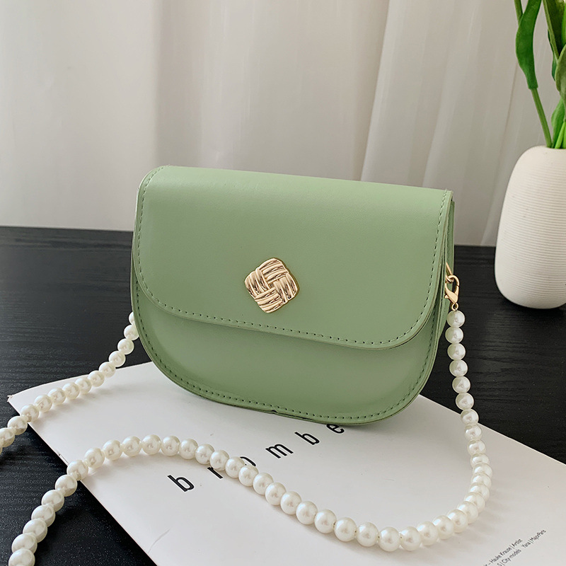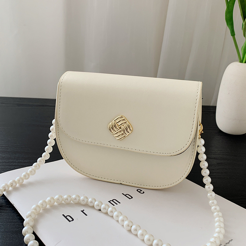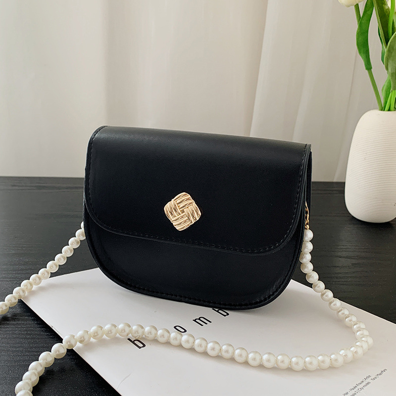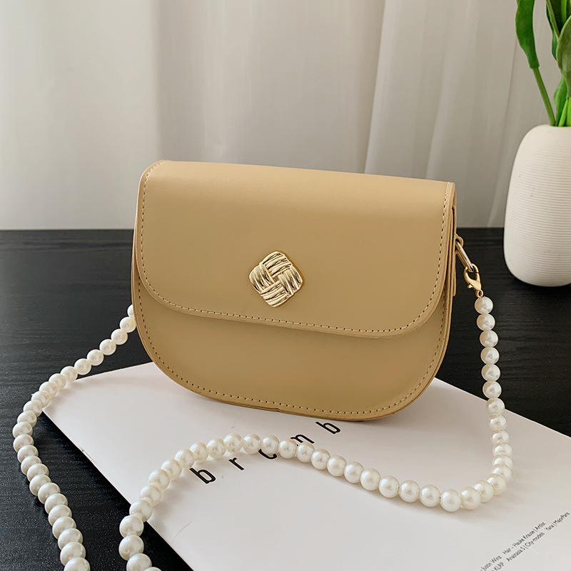 새로운 여름 인기 여성 가방 새로운 2021 한국식 크로스바디 숄더 스몰 스퀘어 백 진주 체인 안장 가방 트렌디