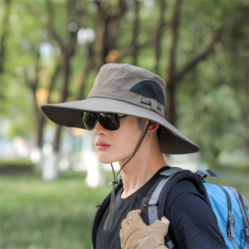 모자 남자 여름 태양 모자 어부의 모자 야외 자외선 차단제 밀짚 모자 낚시 통기성 등산 큰 처마 낚시 태양 모자